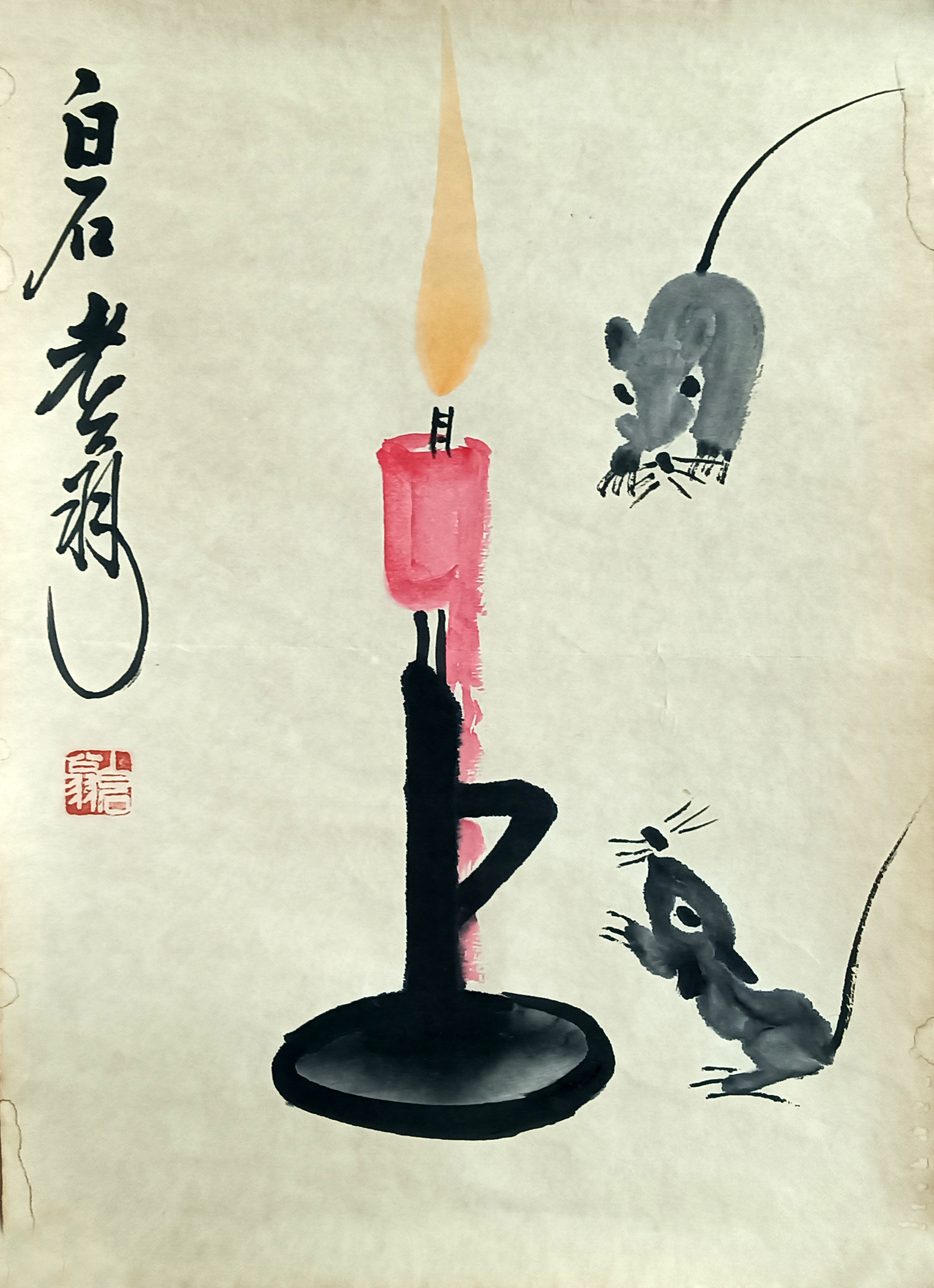 国画:老鼠上灯台