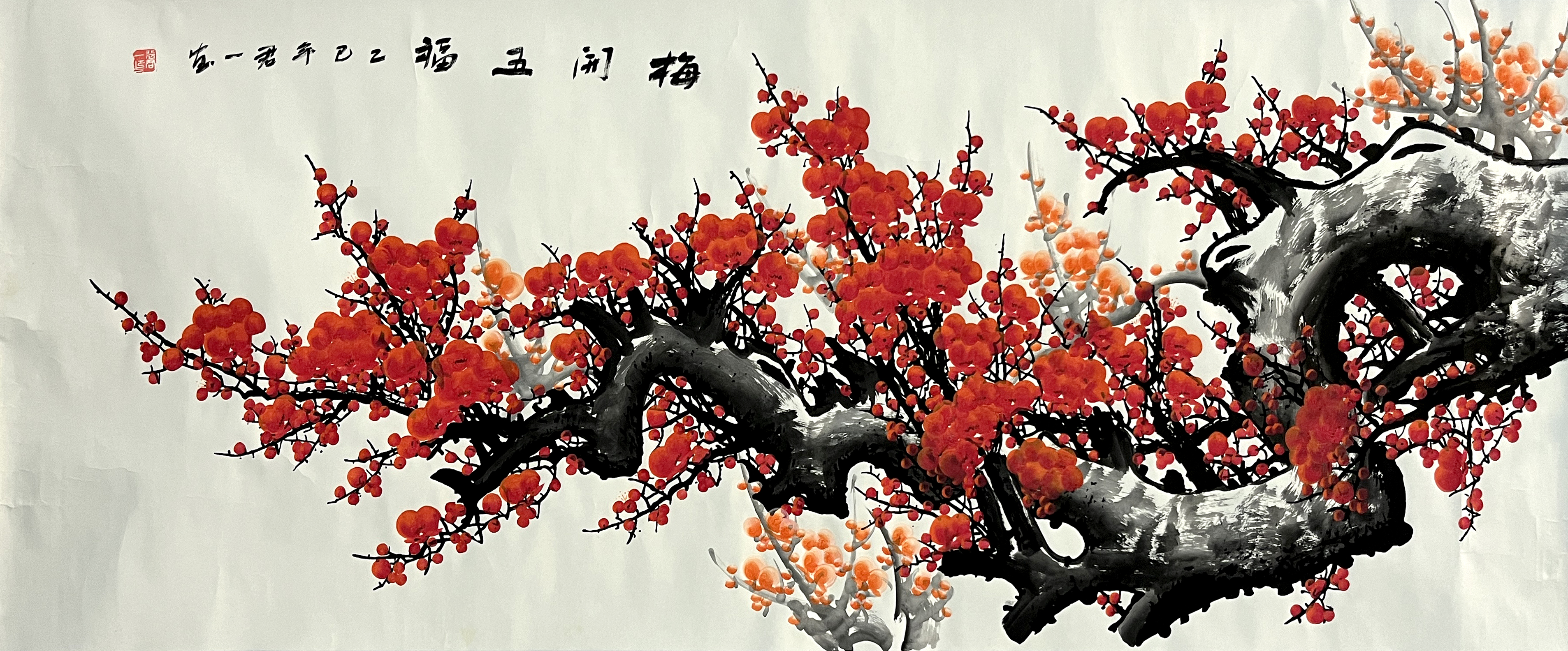 国画:梅开五福