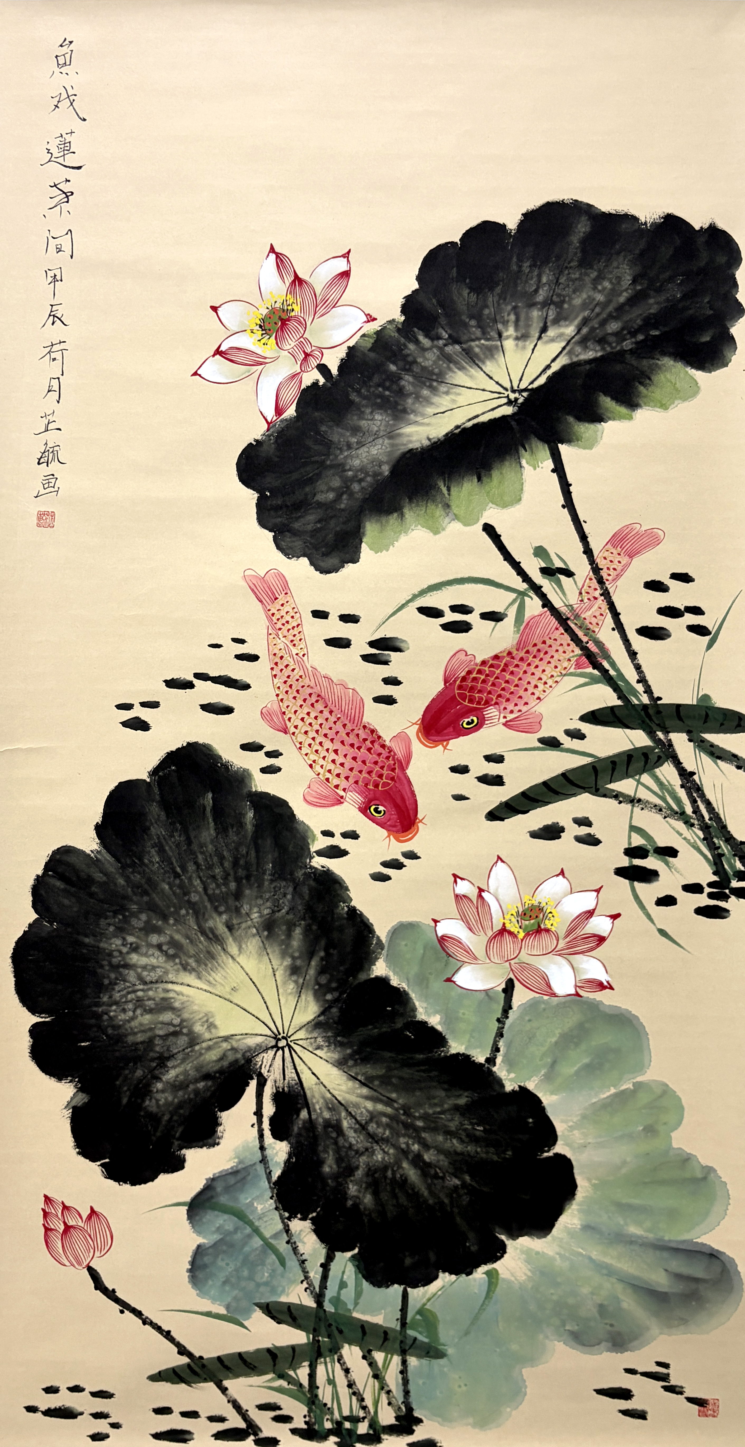 国画:鱼戏莲叶间