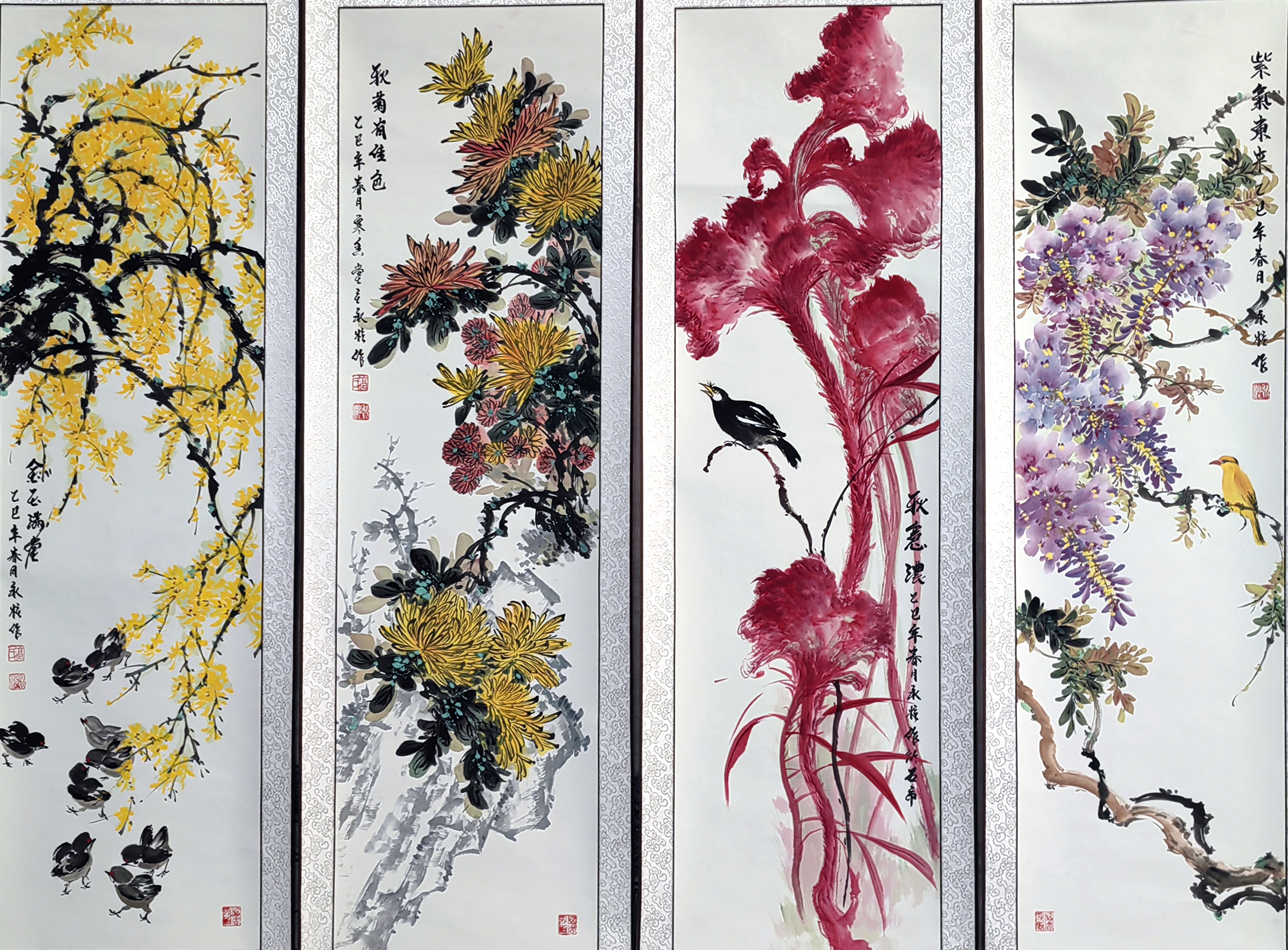 国画:花鸟四条屏