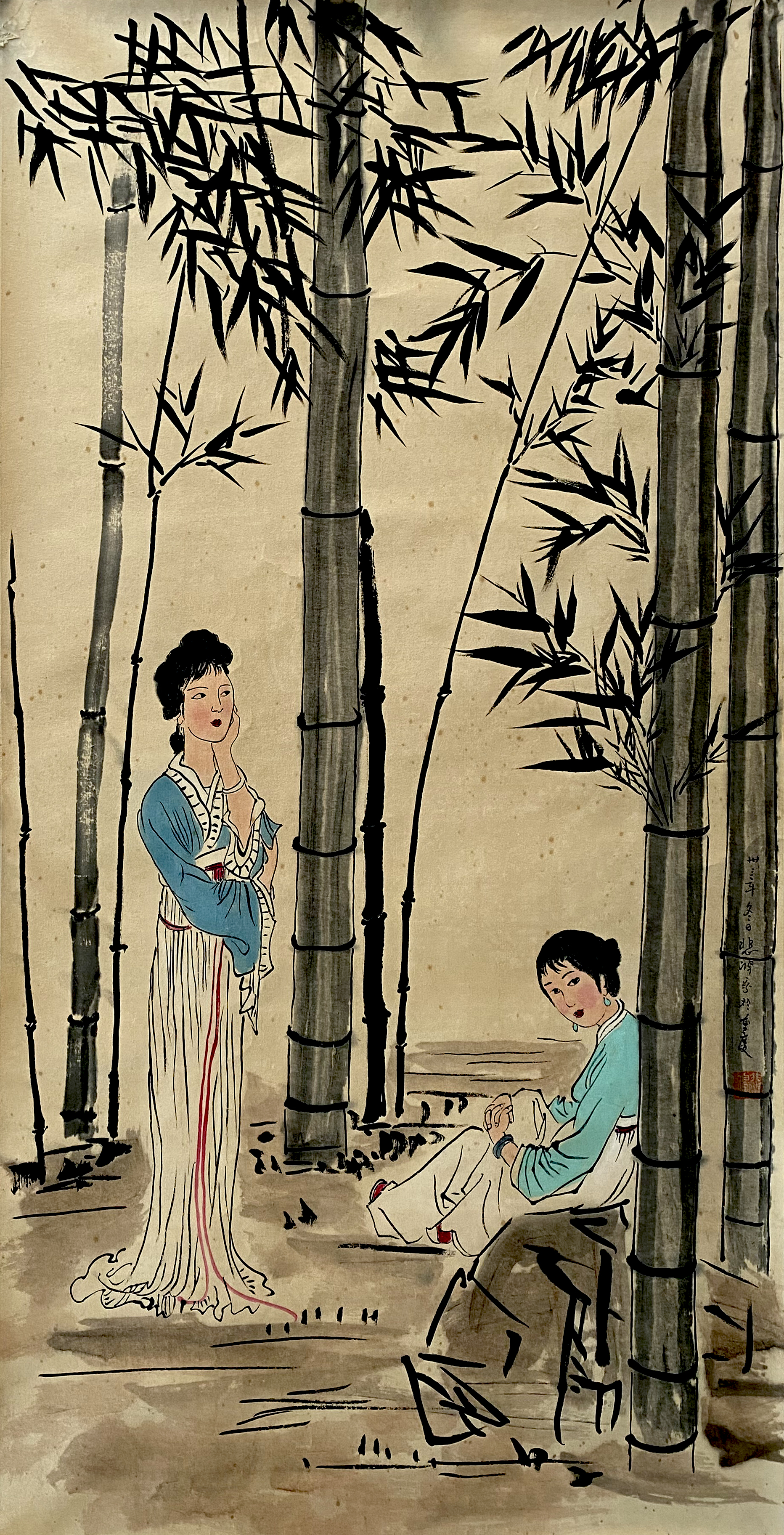 国画:青竹仕女图