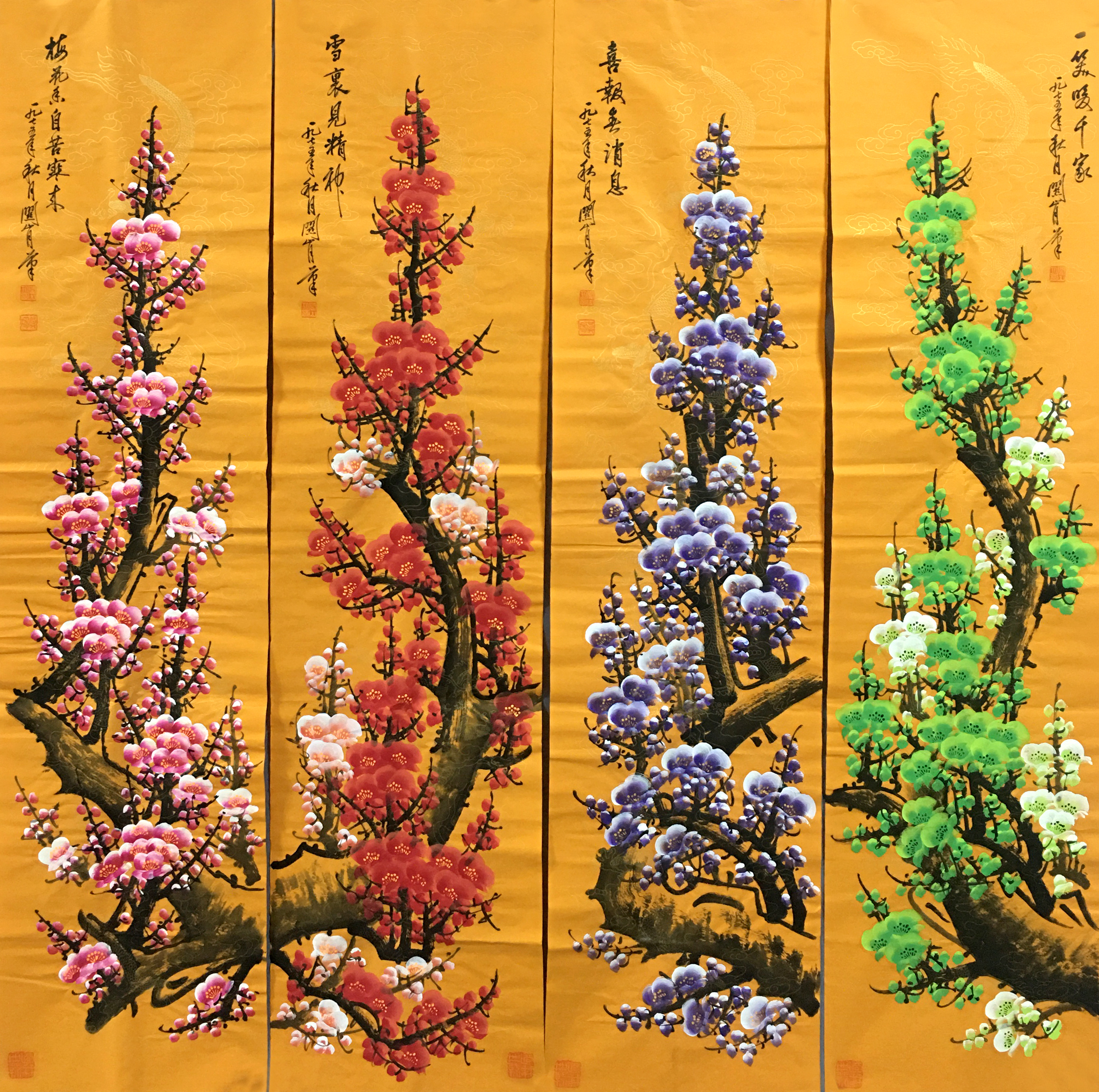 国画:梅花四条屏