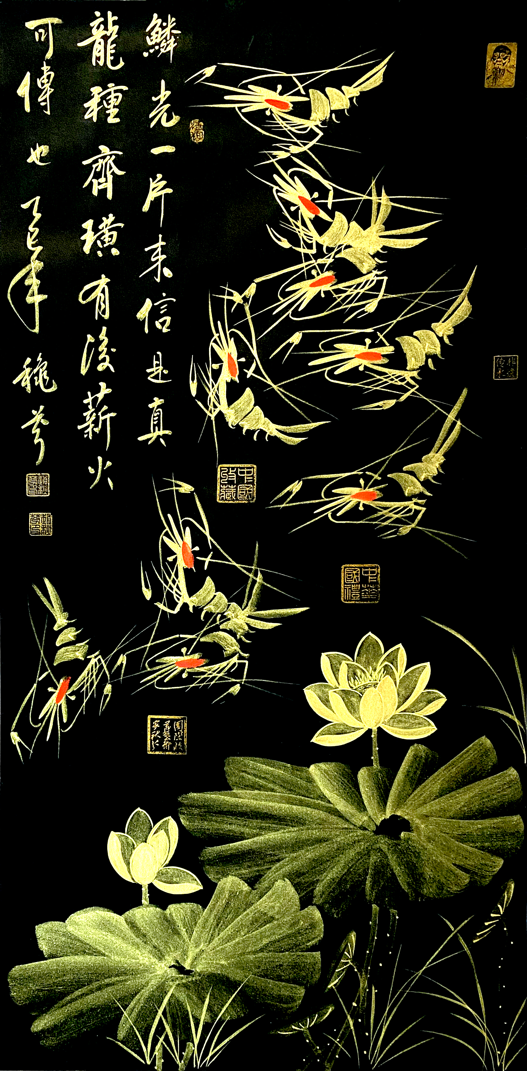国画:金虾荷花