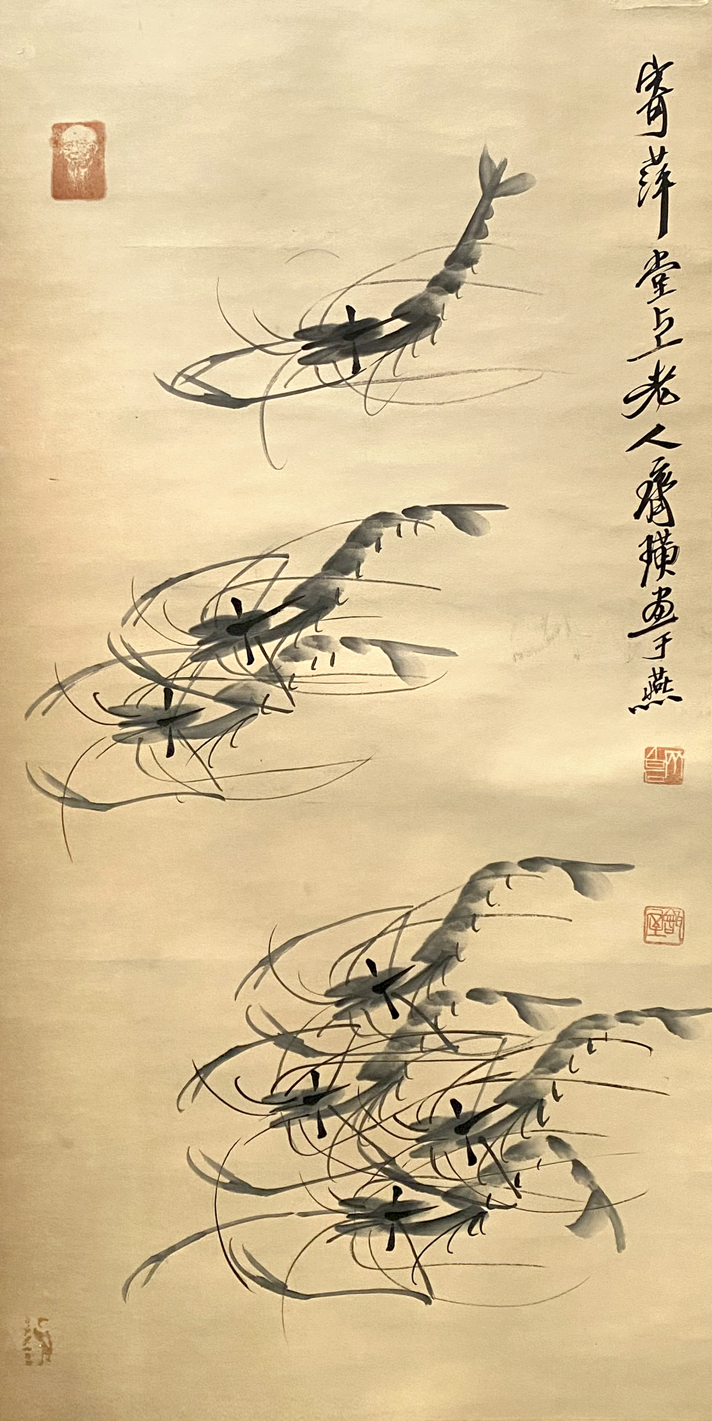 国画:墨虾图