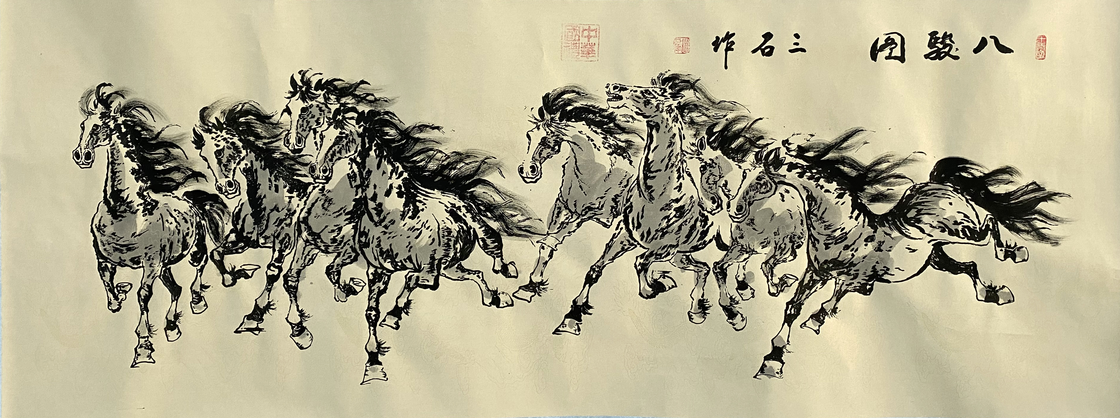 国画:八骏图
