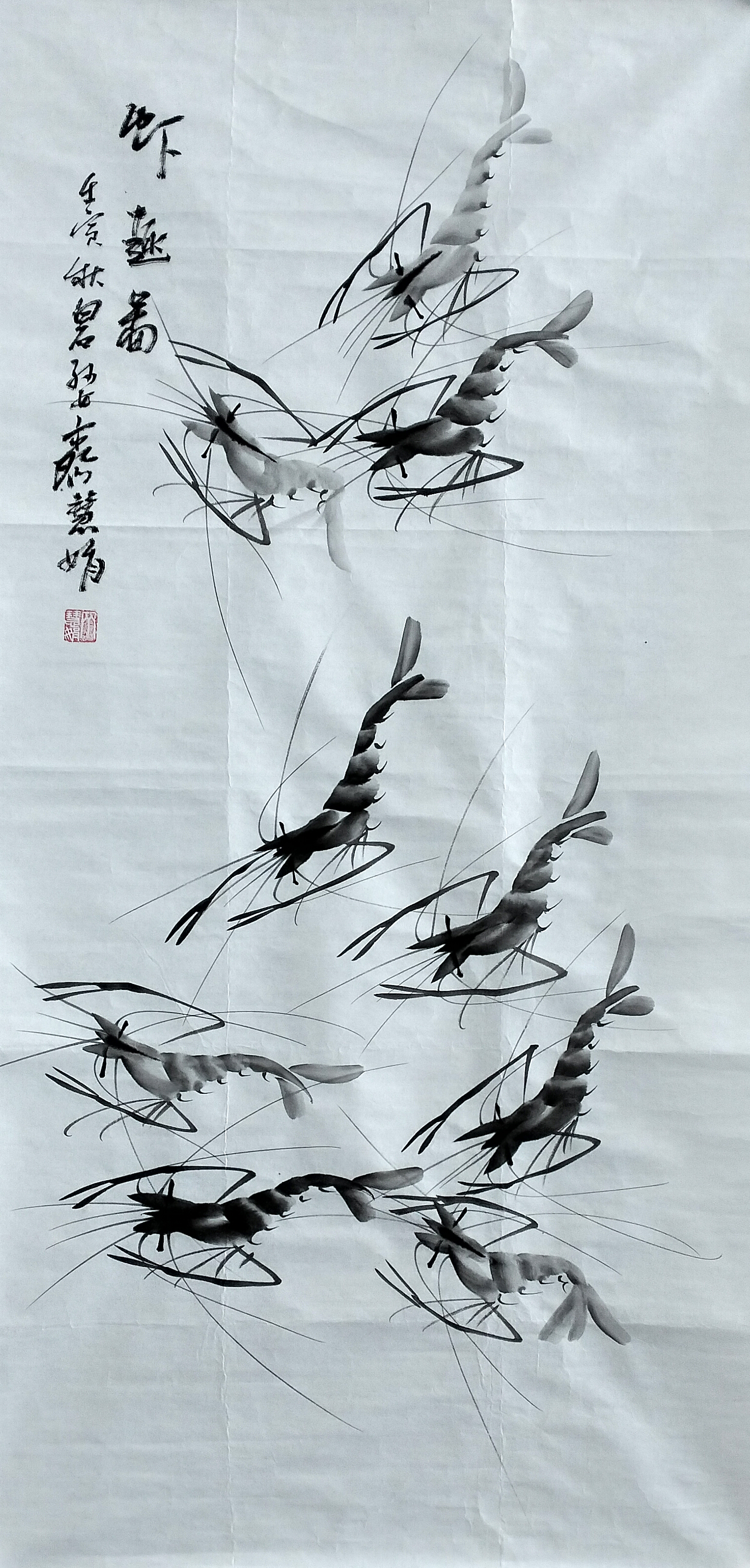 国画:虾趣图