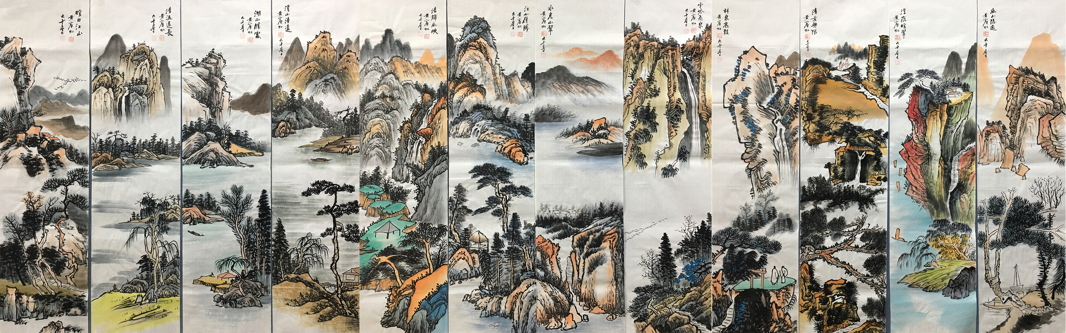 国画:山水十二条屏
