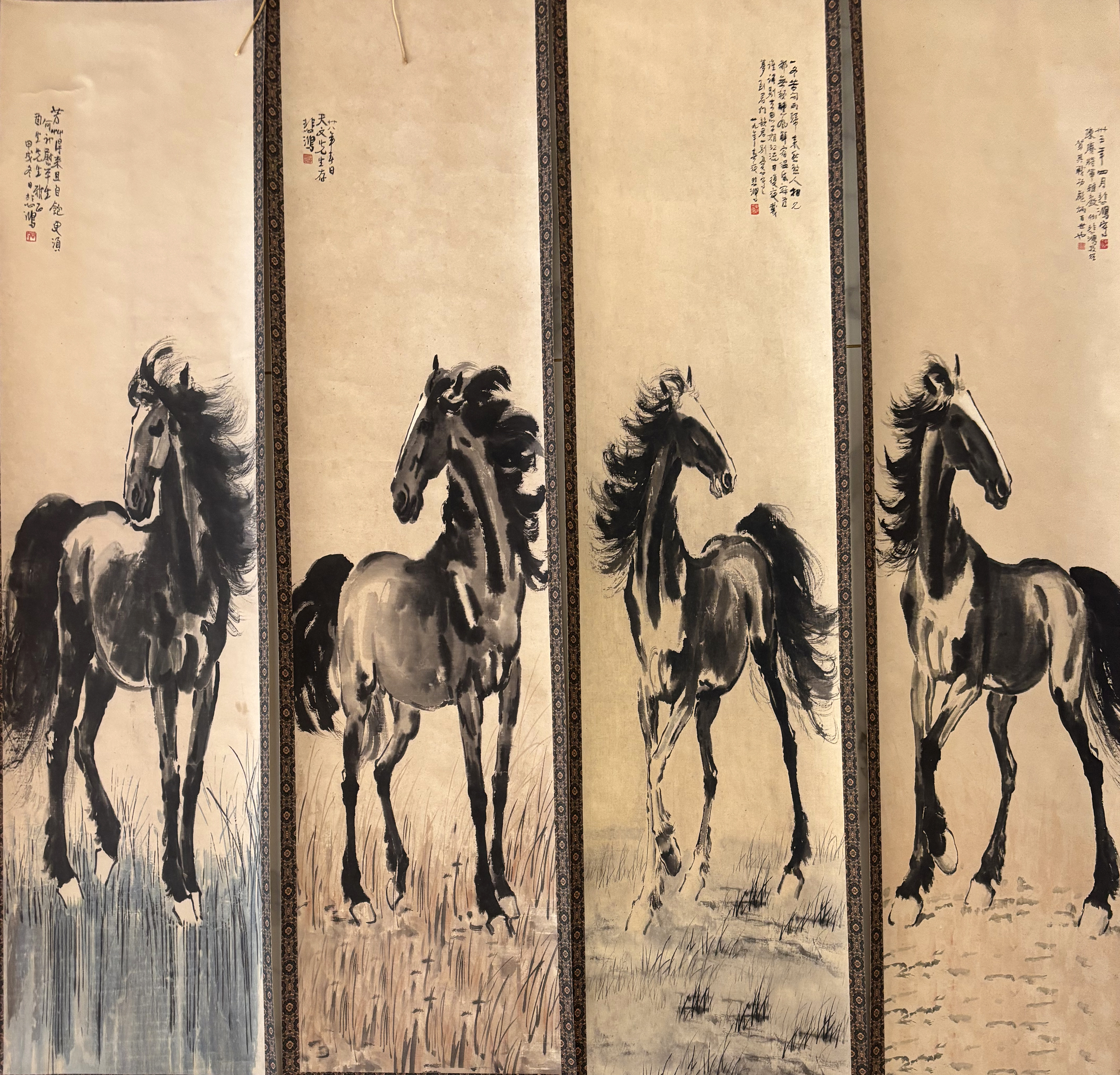 国画:骏马四条屏