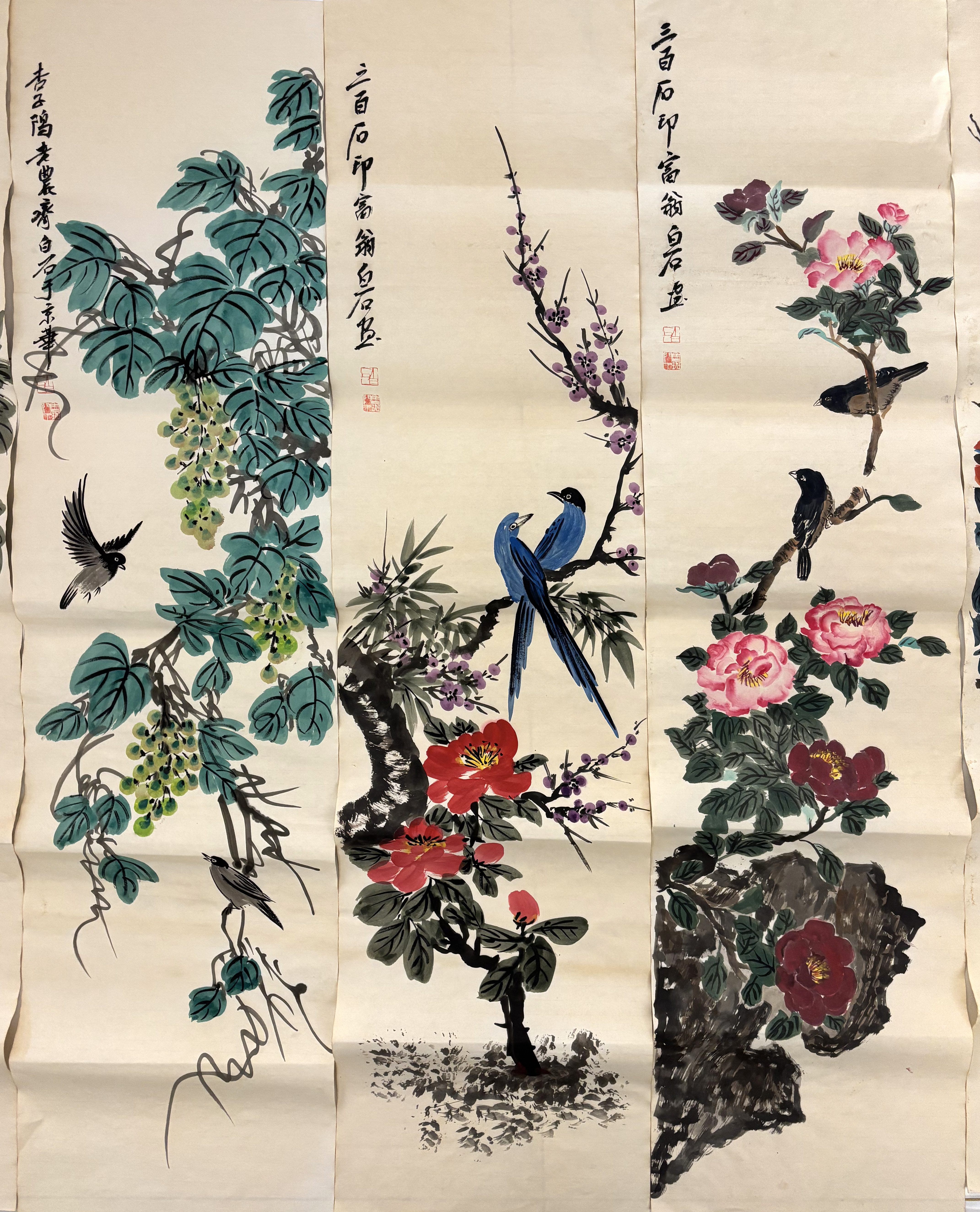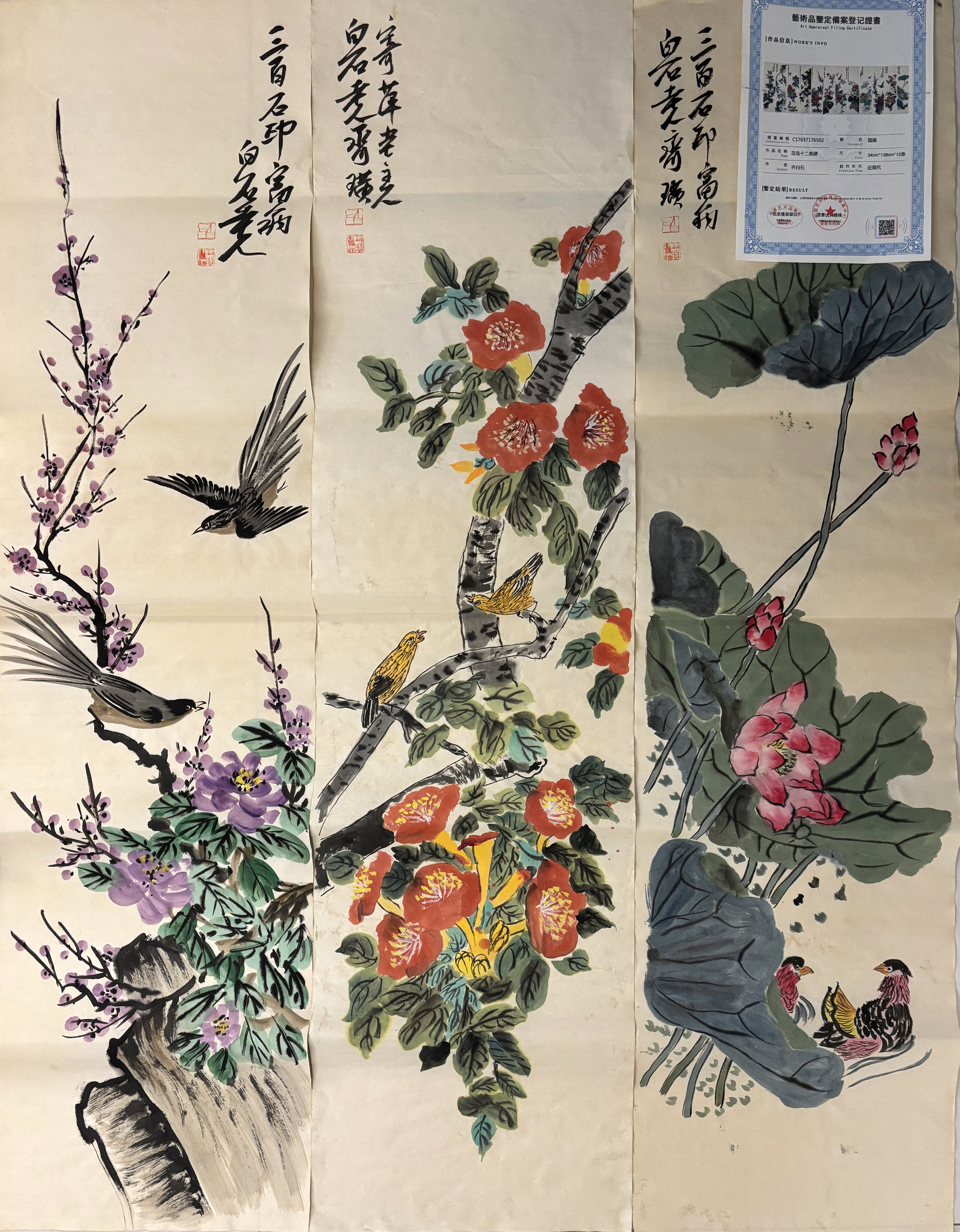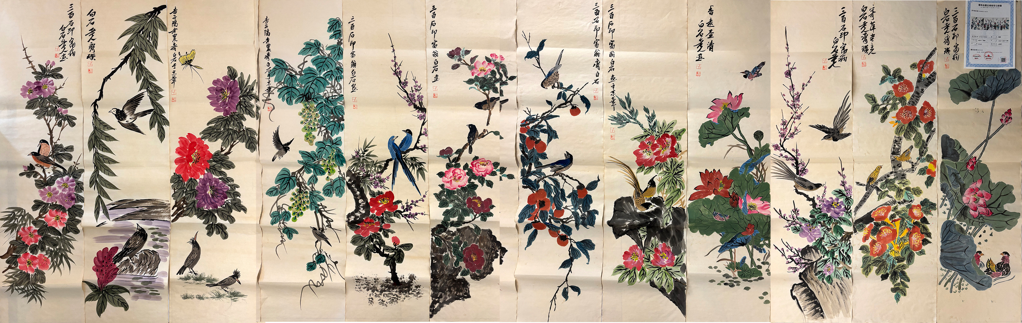 国画:花鸟十二条屏