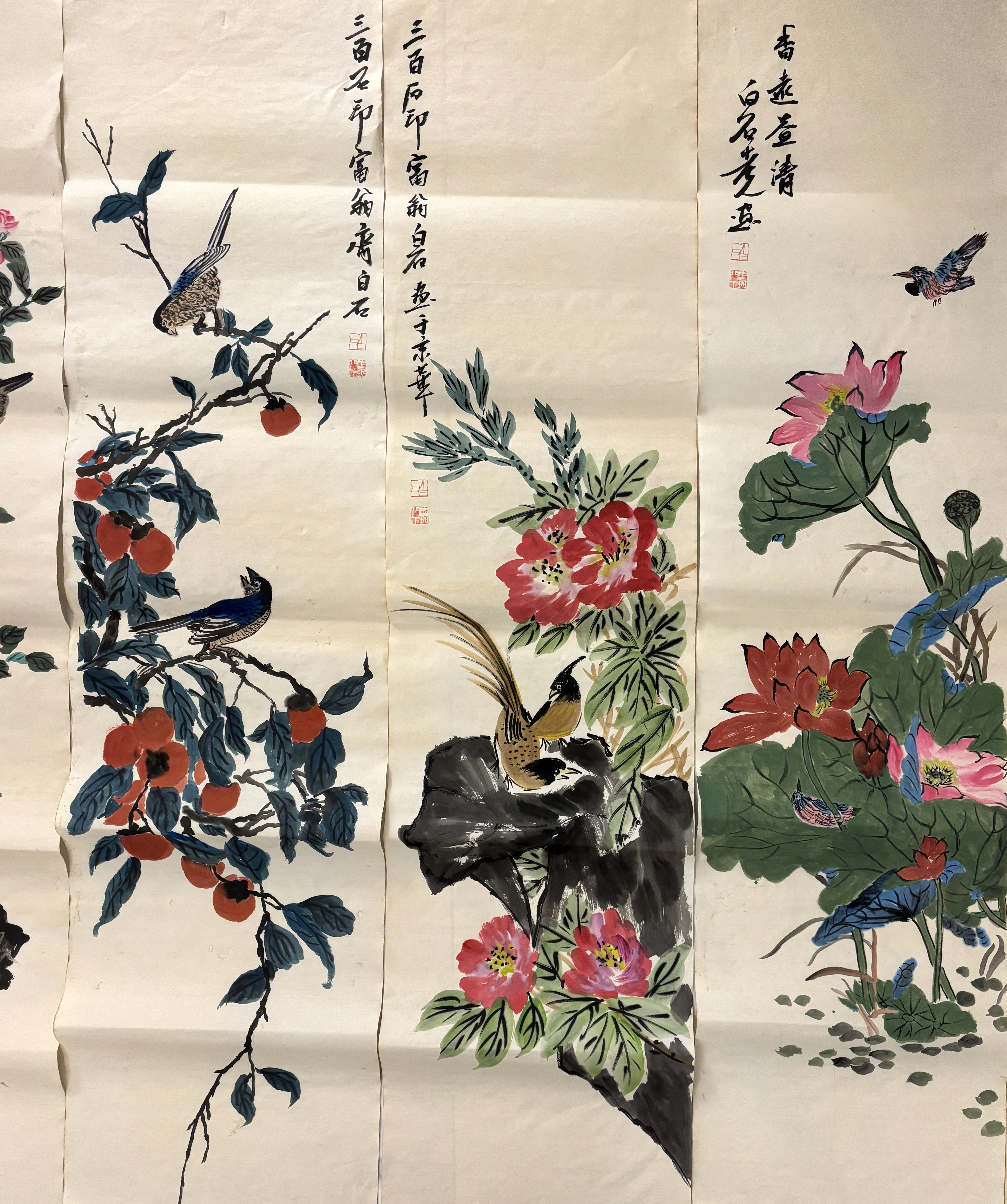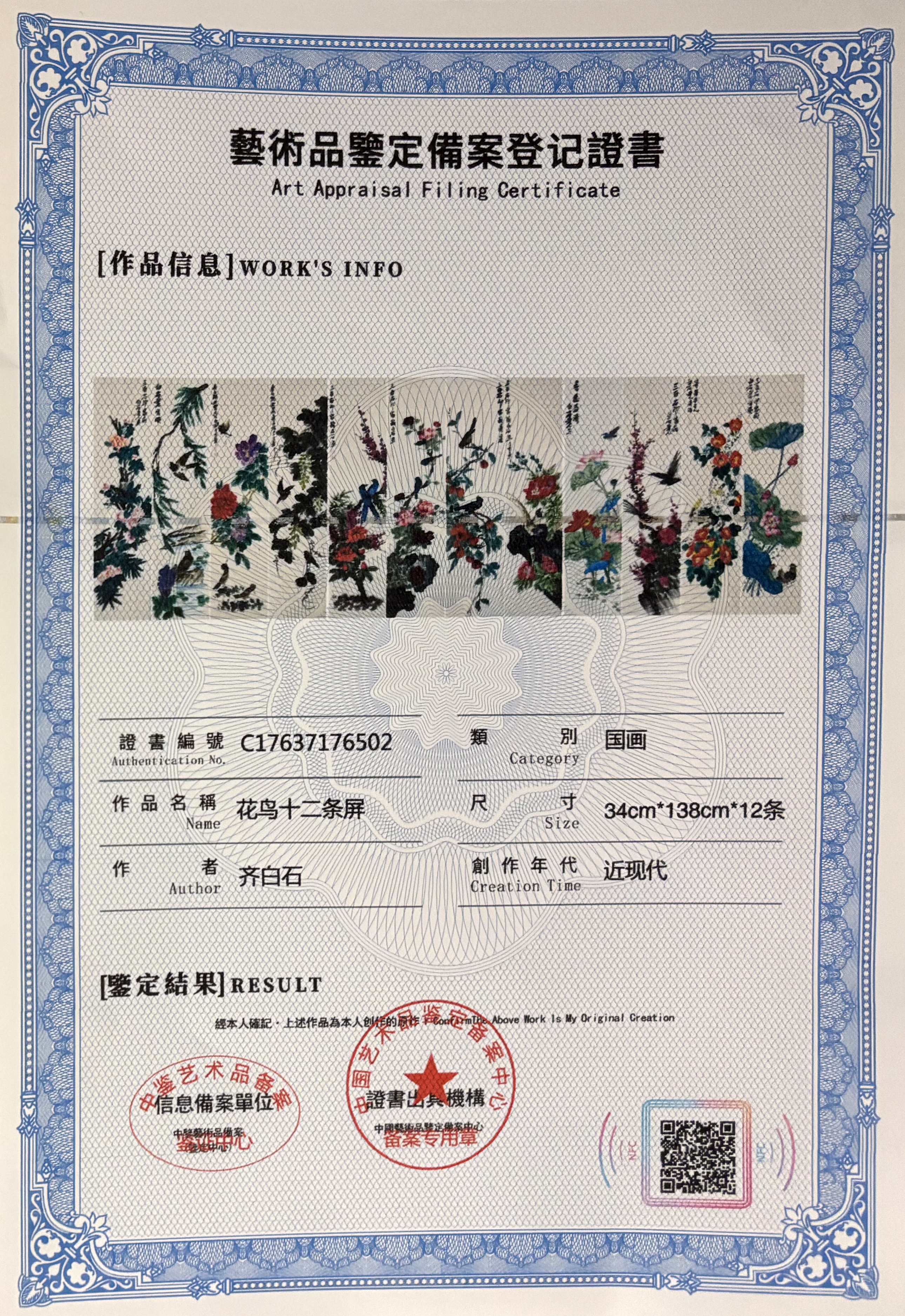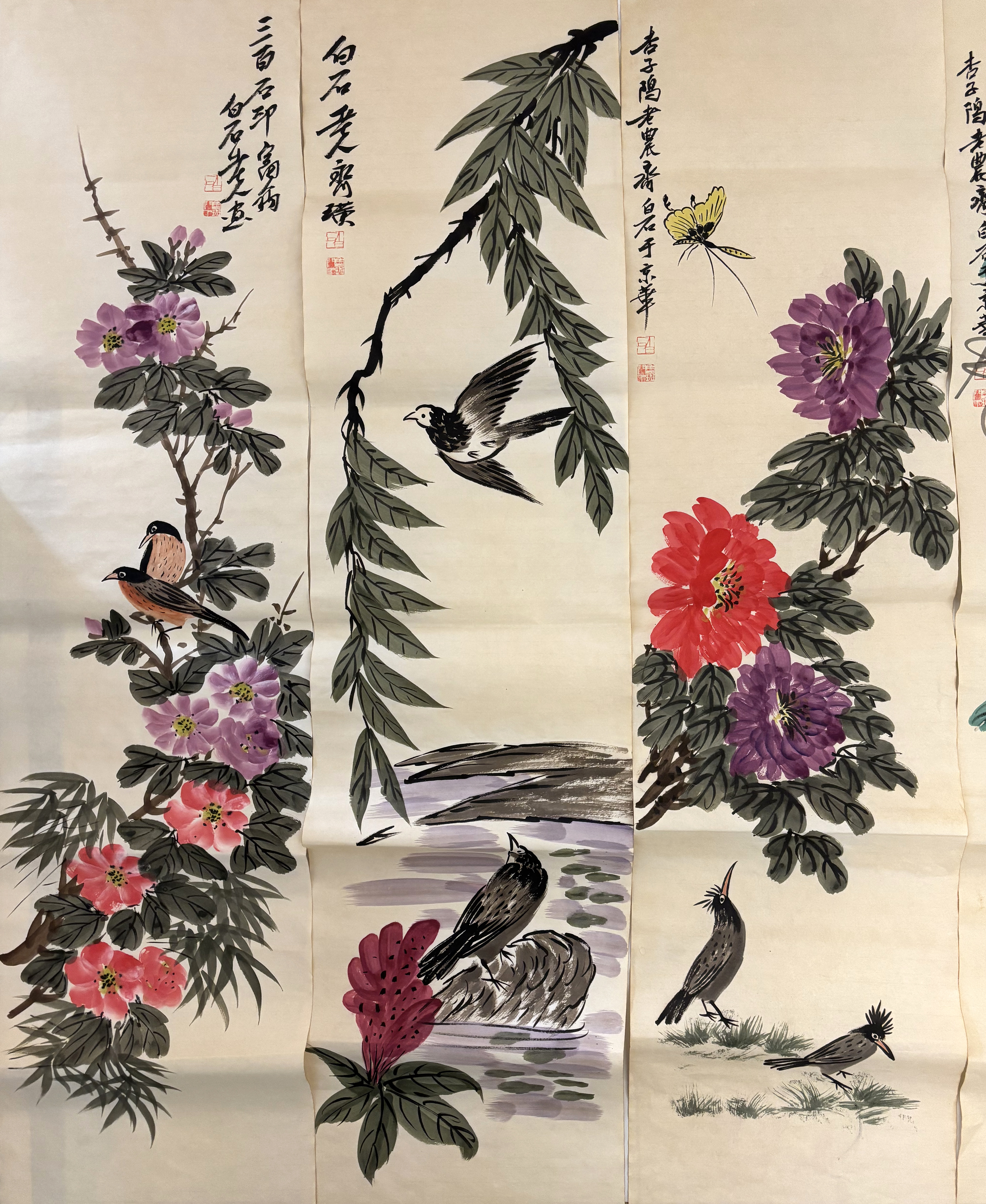 国画:花鸟十二条屏