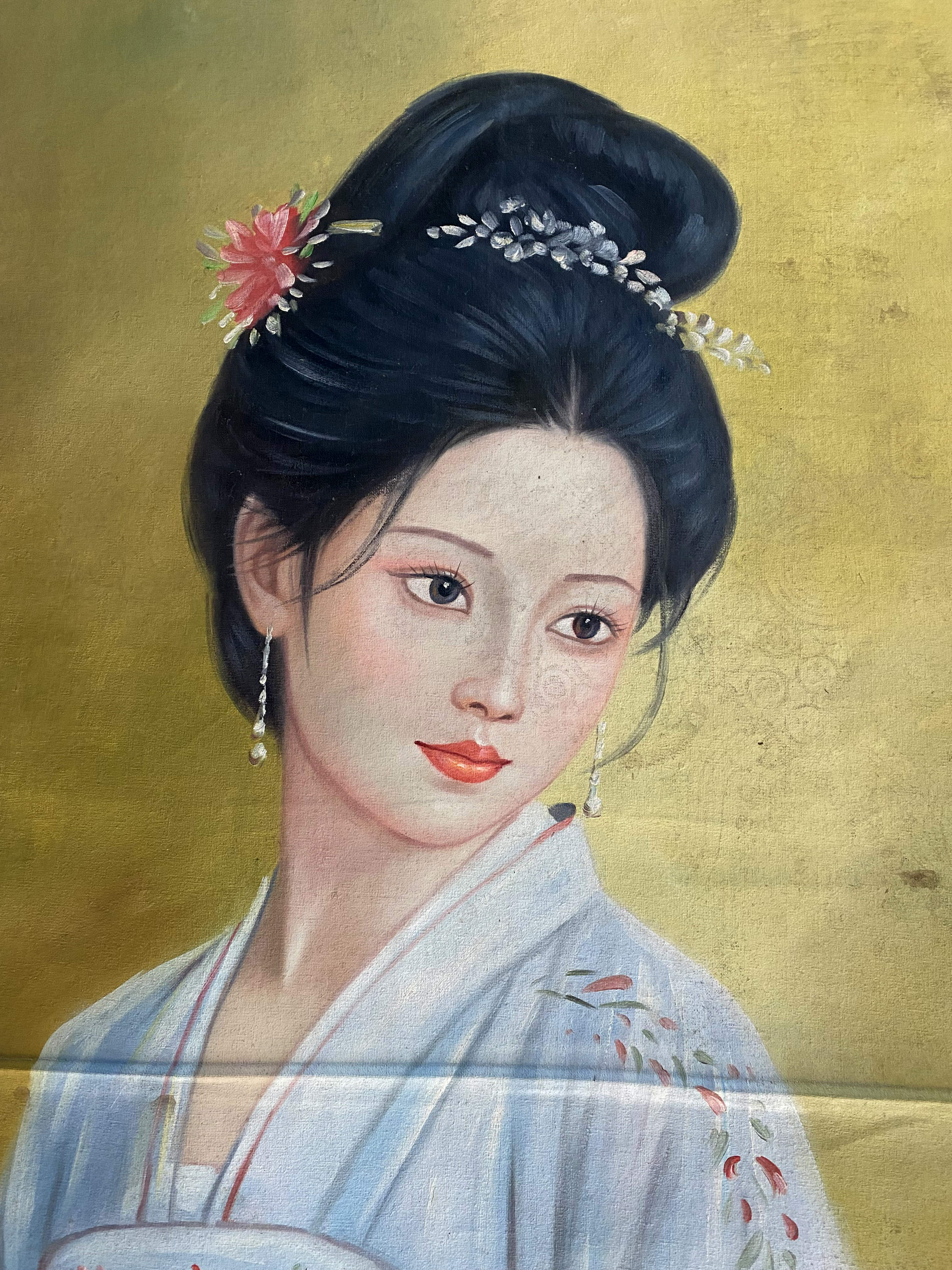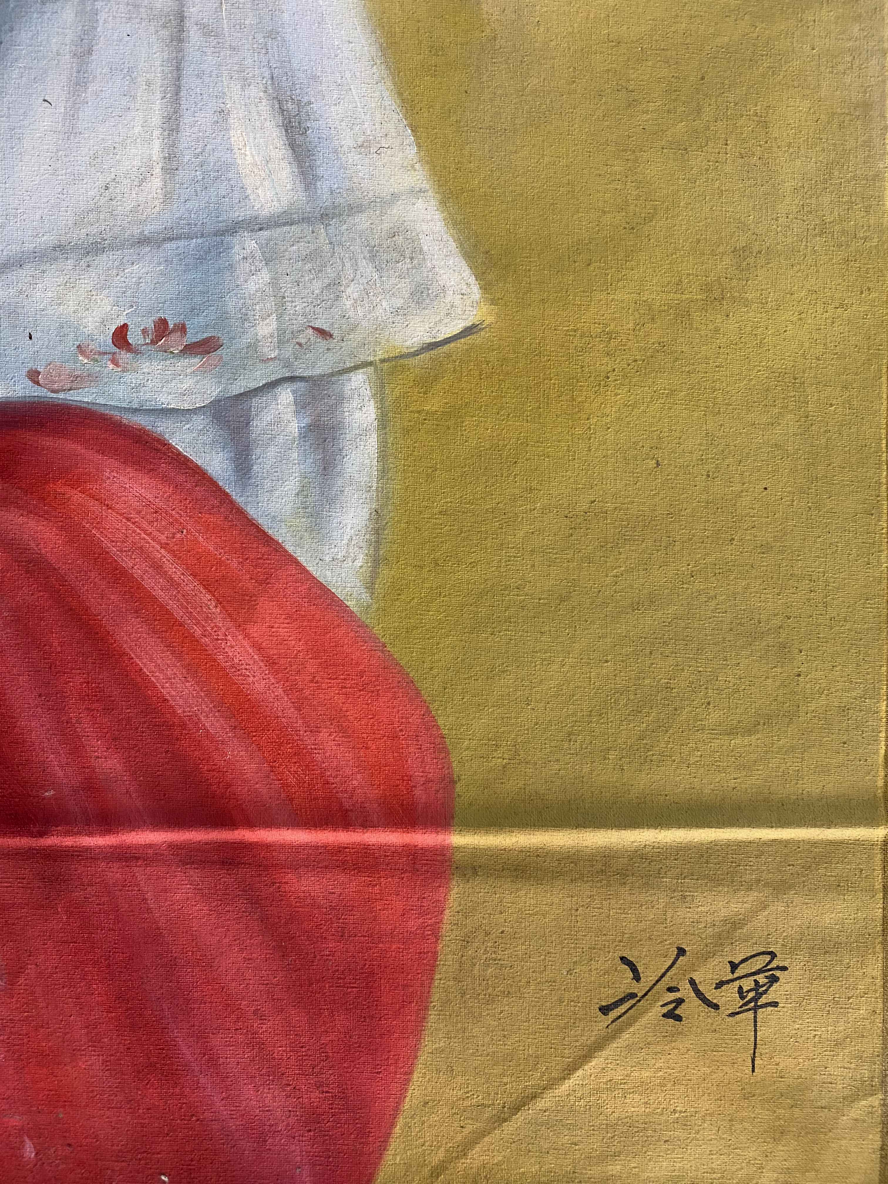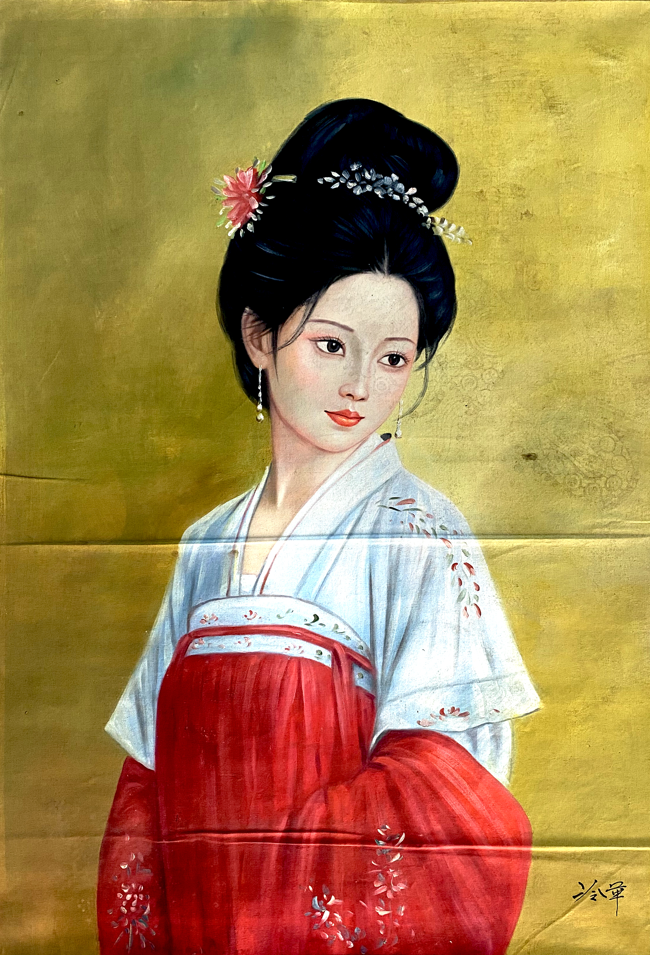 国画:红白衣美女图