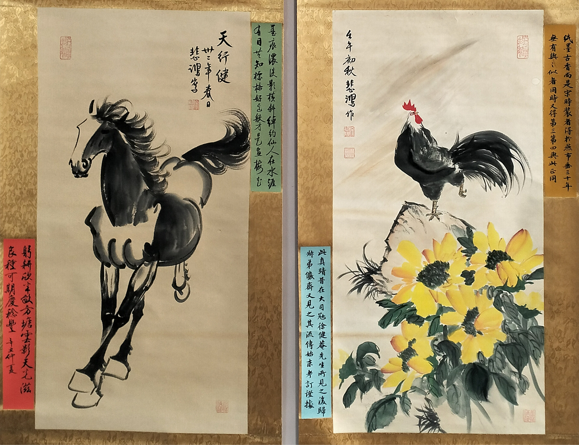 国画:公鸡花卉、奔马图