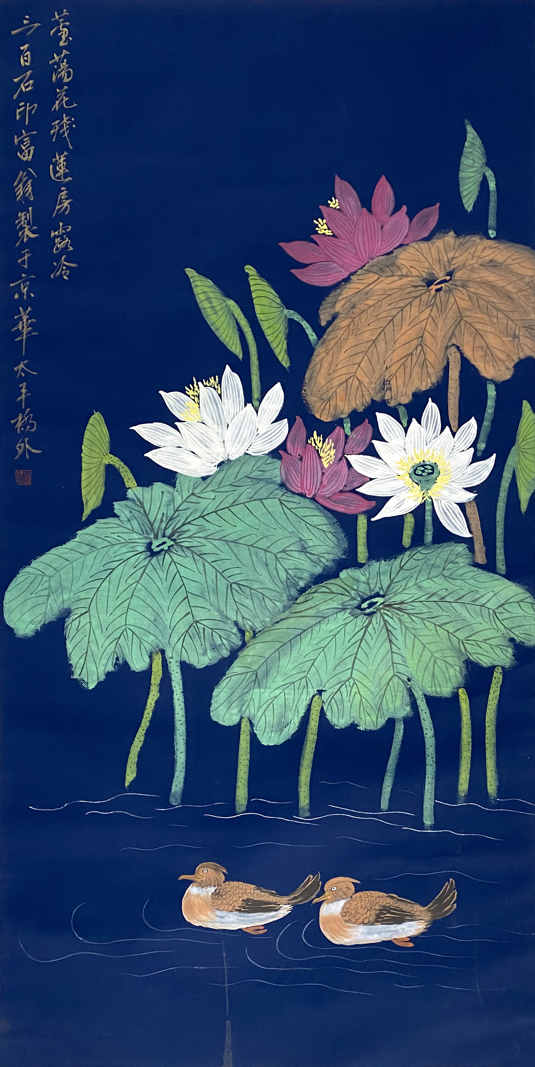 国画:荷花鸳鸯图