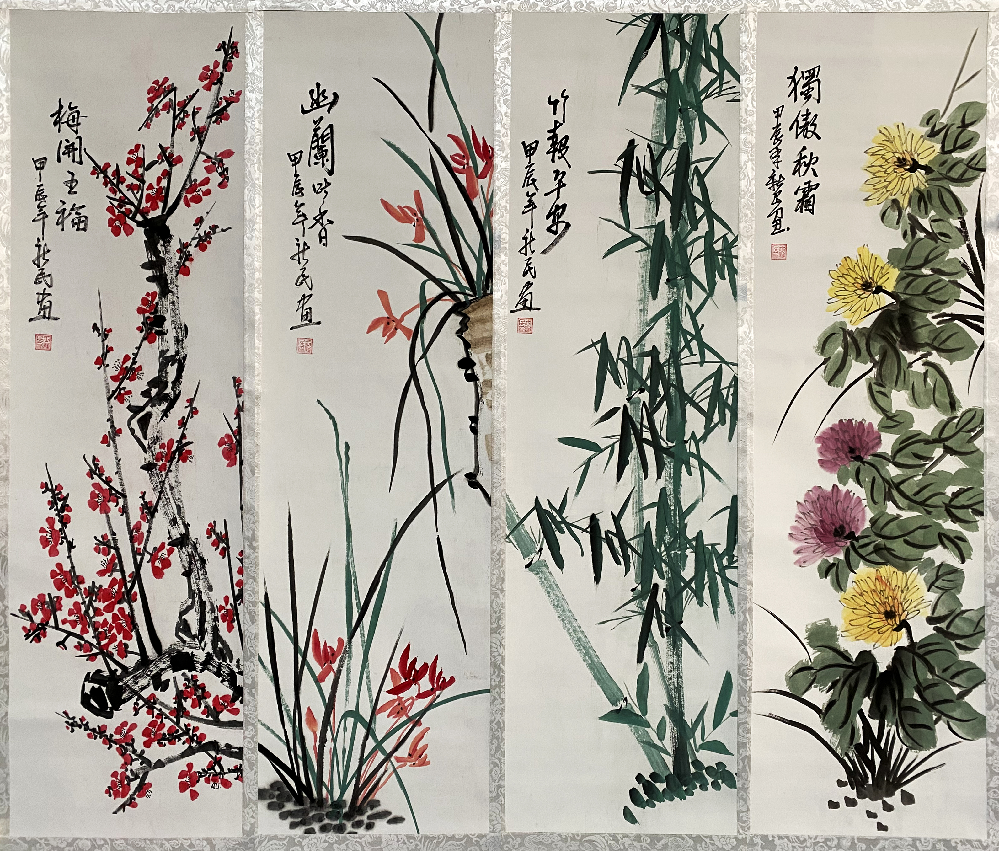 国画:梅兰竹菊四条屏