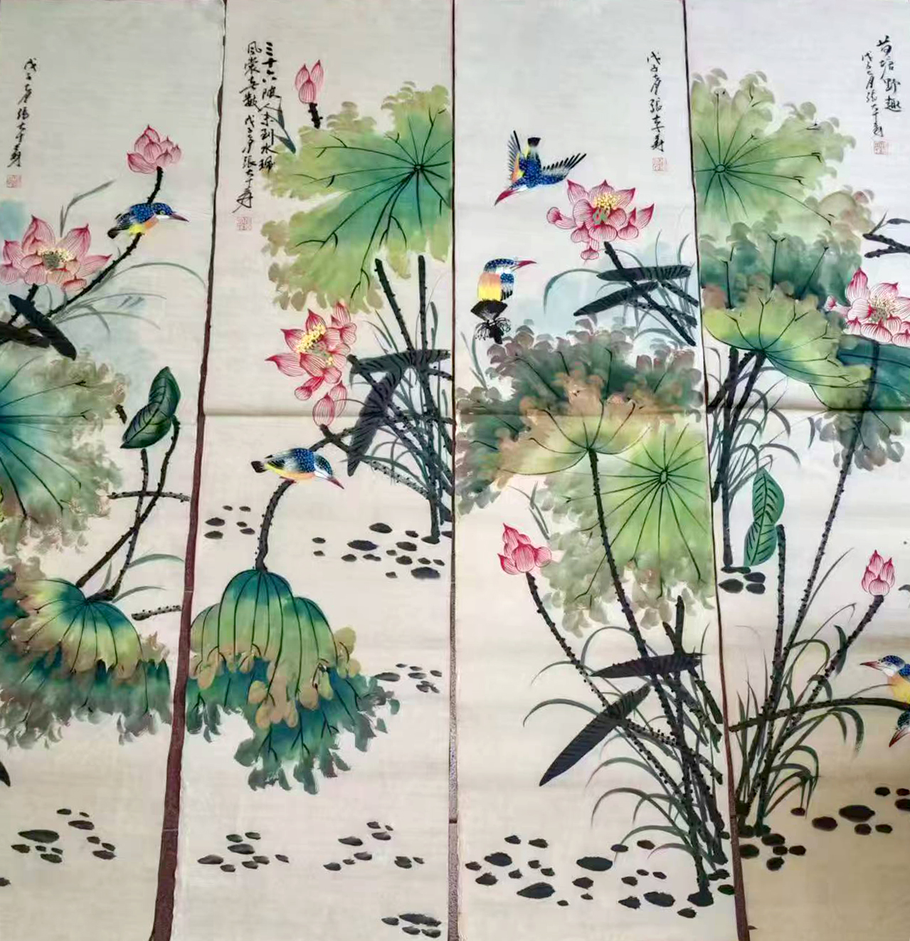 作品名称:荷花四条屏福书法