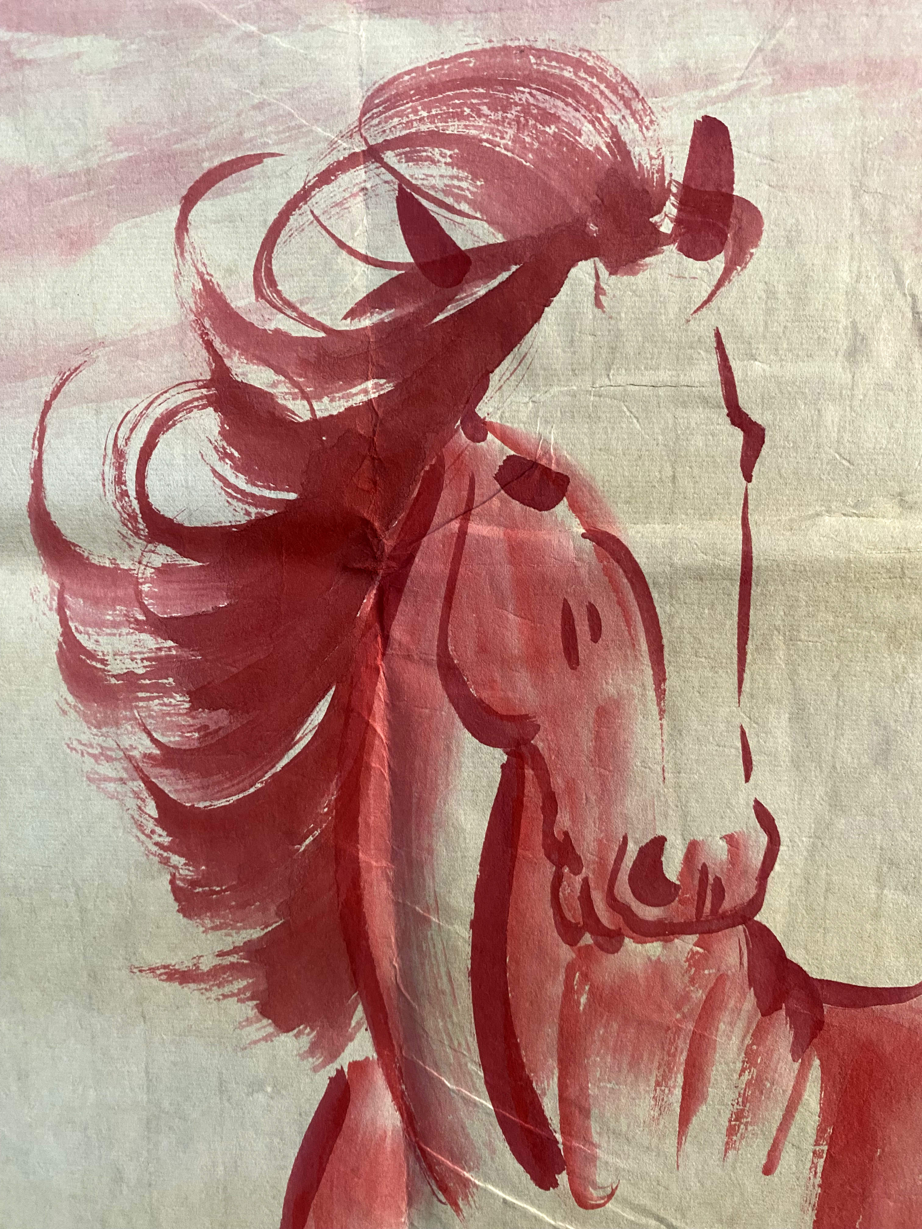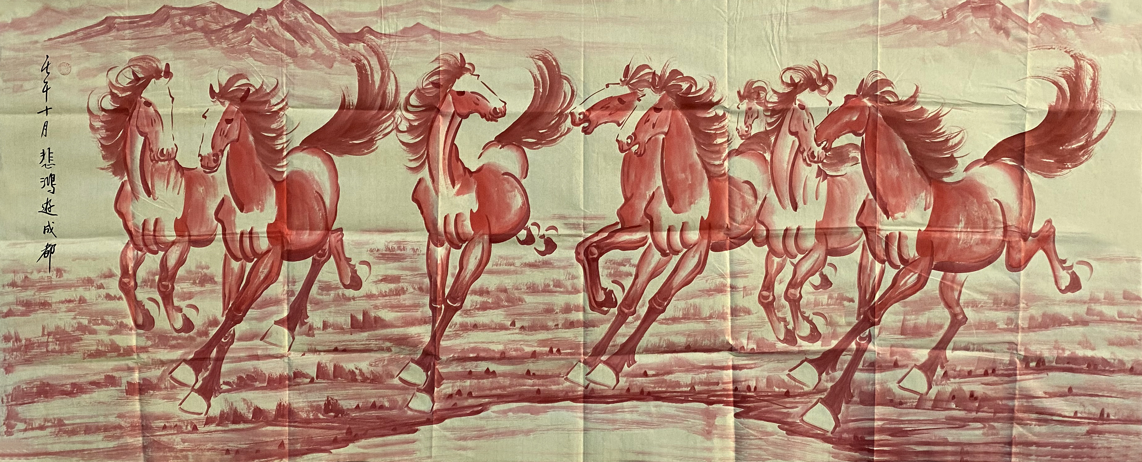 国画:红八骏图