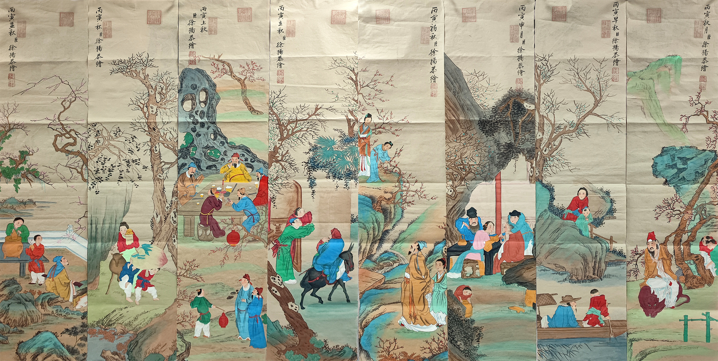 国画:八条屏