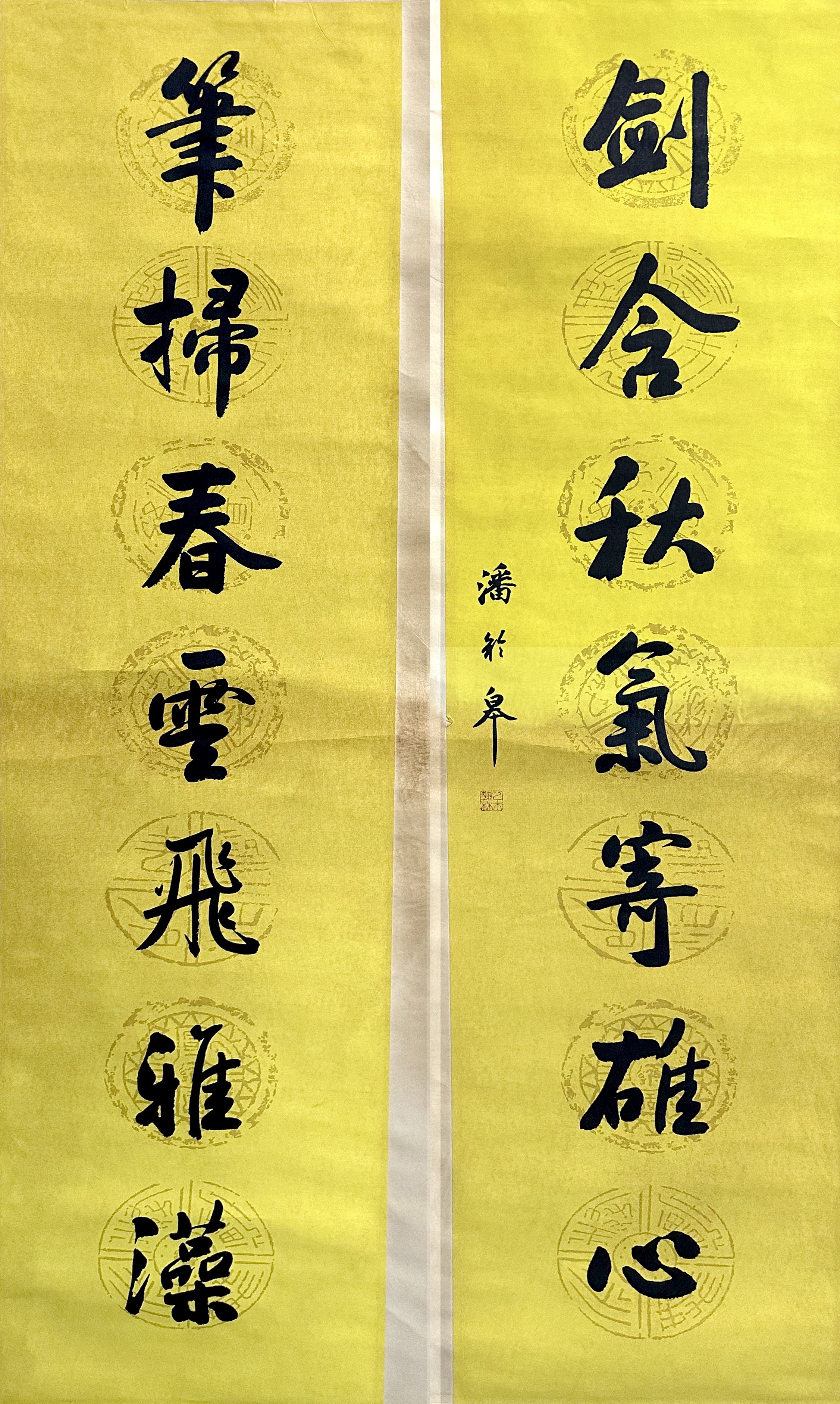 国画:黄底对联
