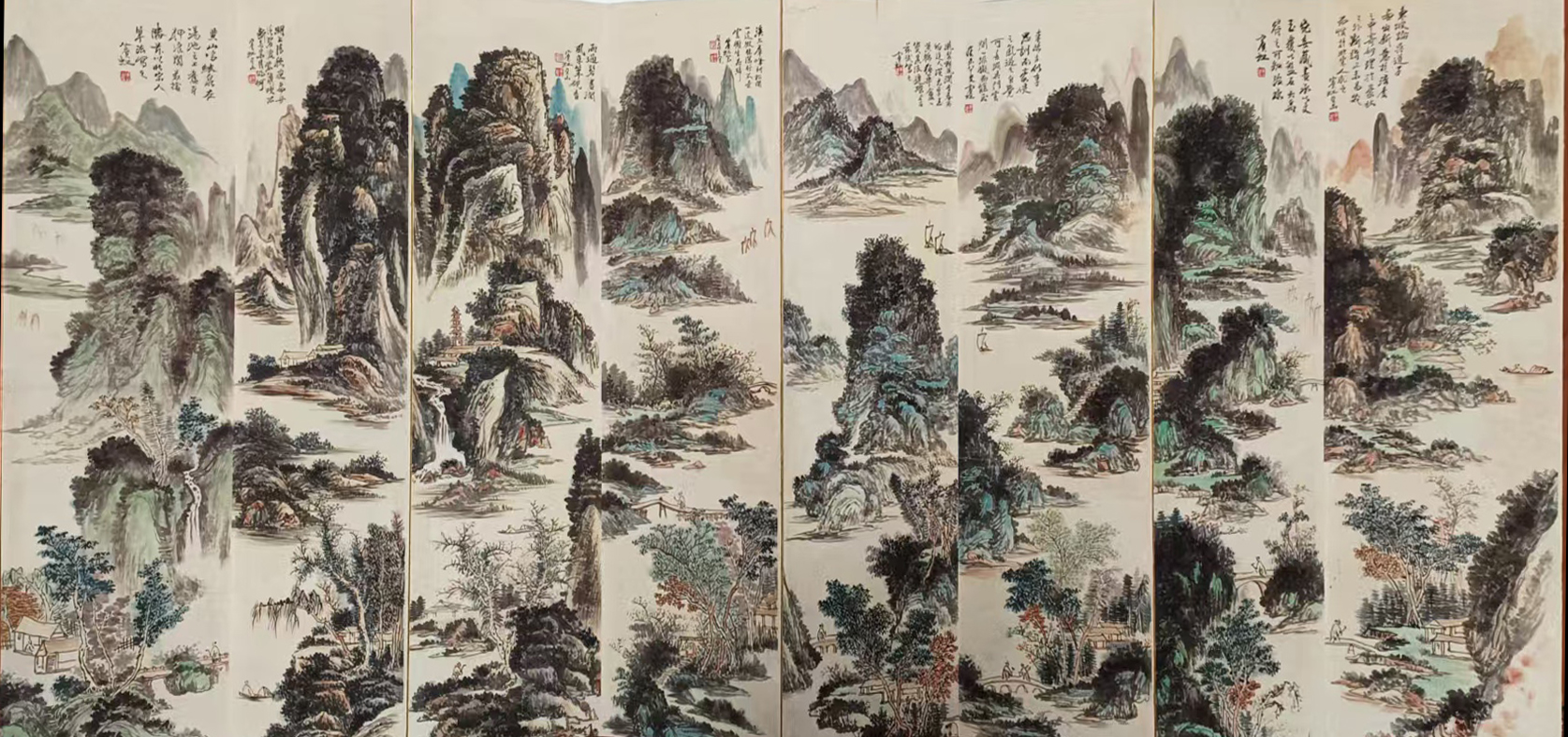 国画:江南春景八条屏
