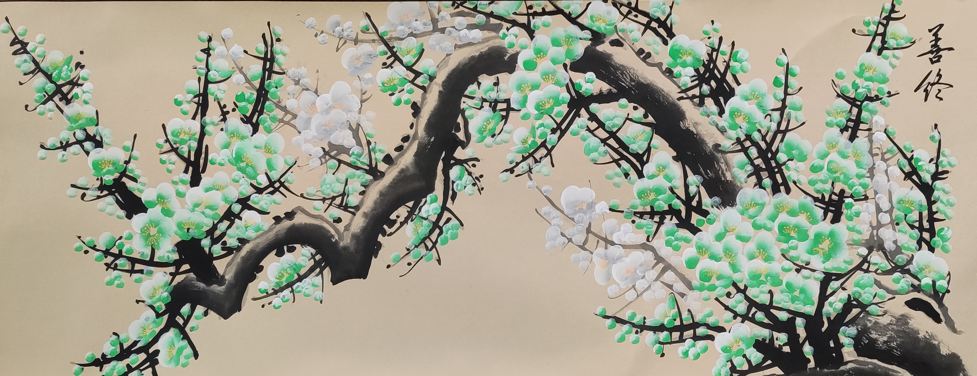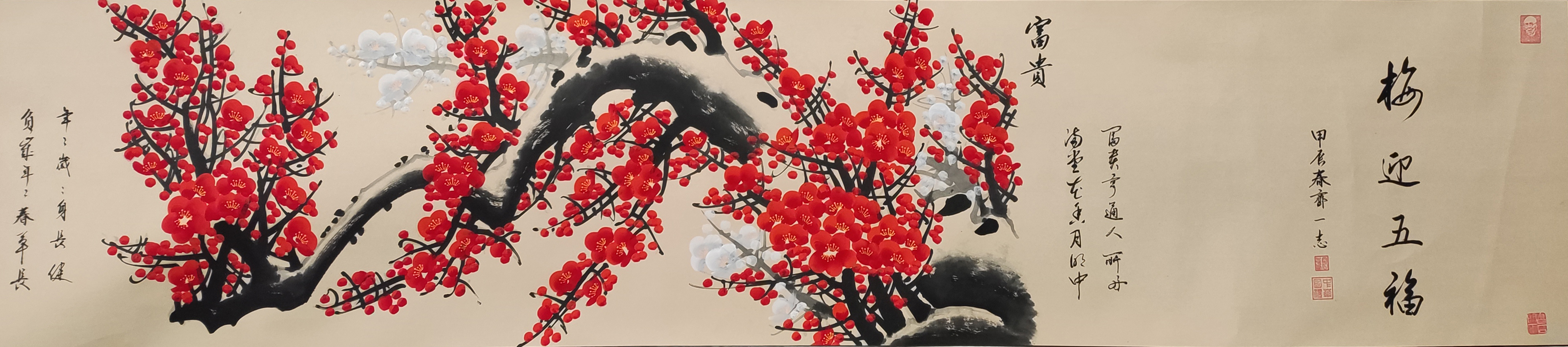 国画:梅迎五福