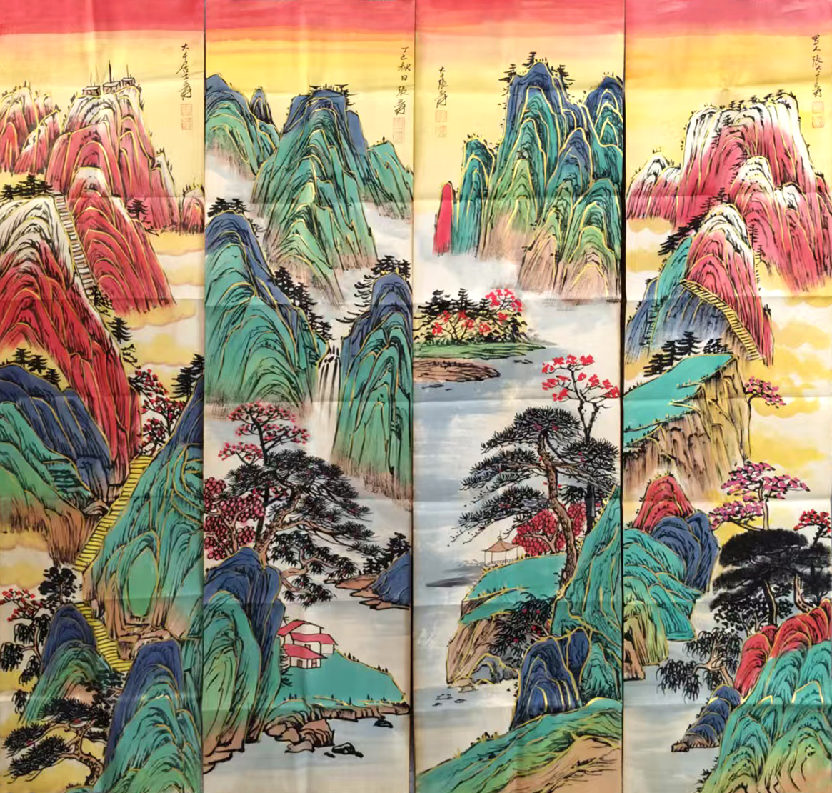 国画:山水四条屏