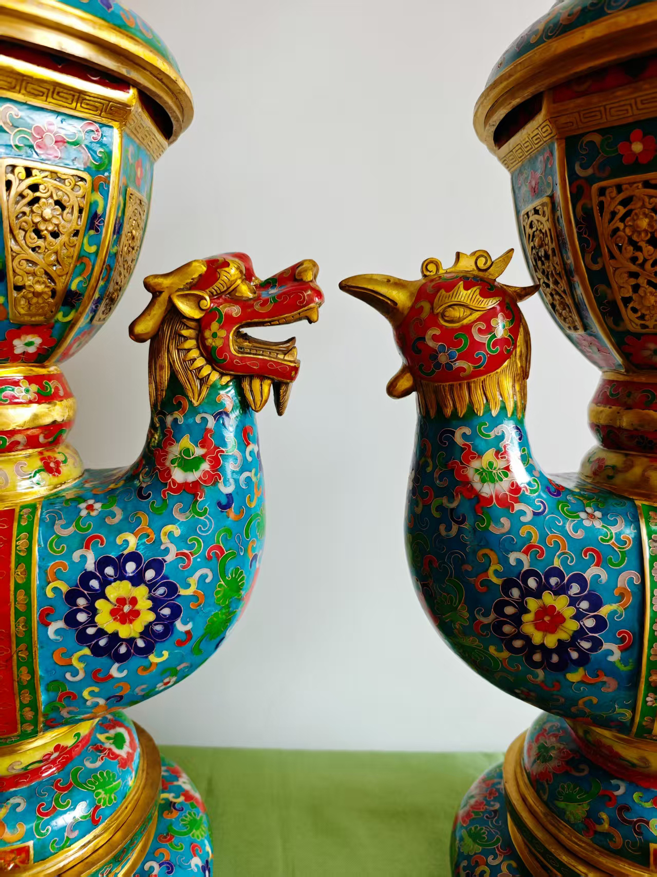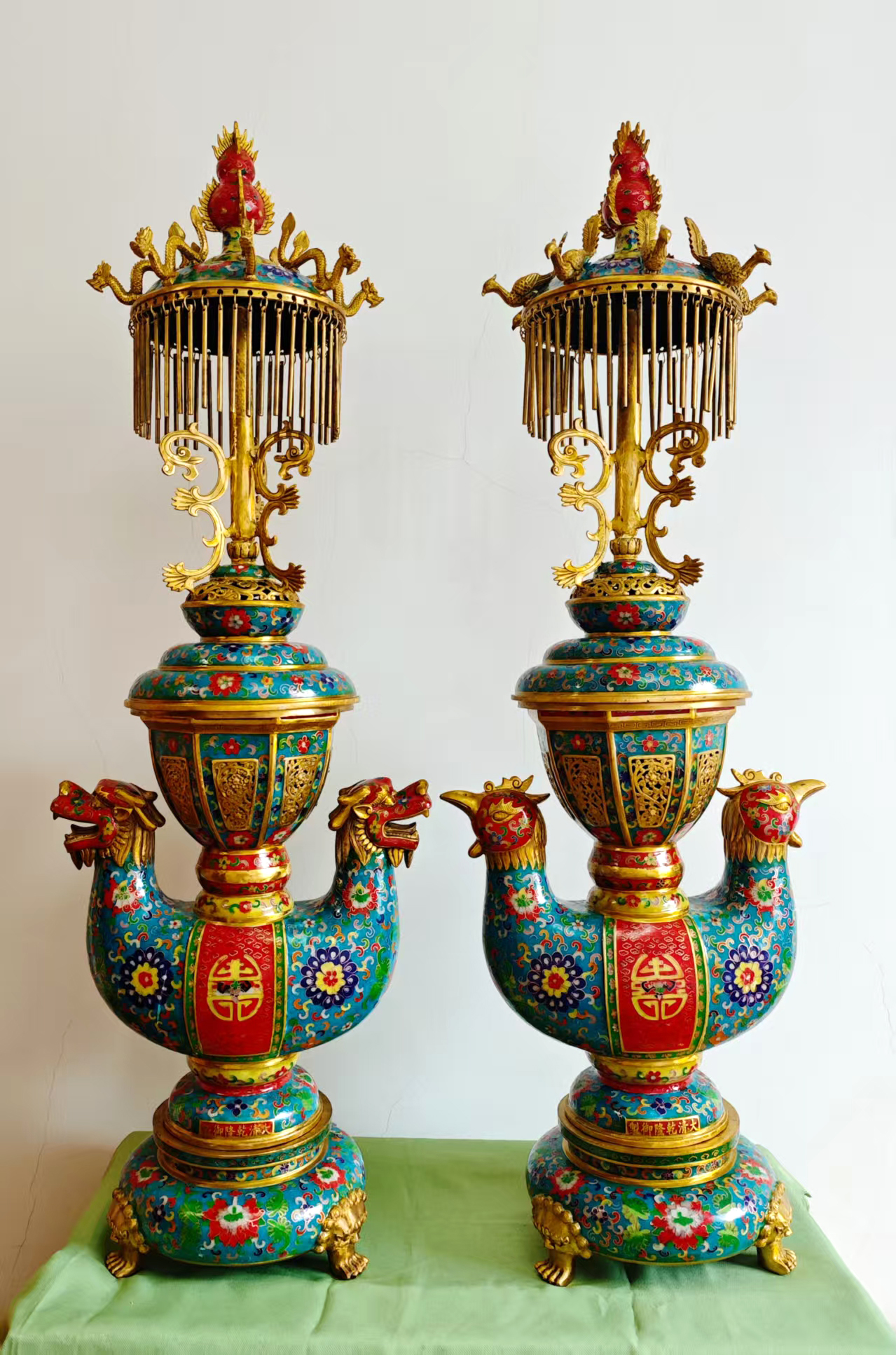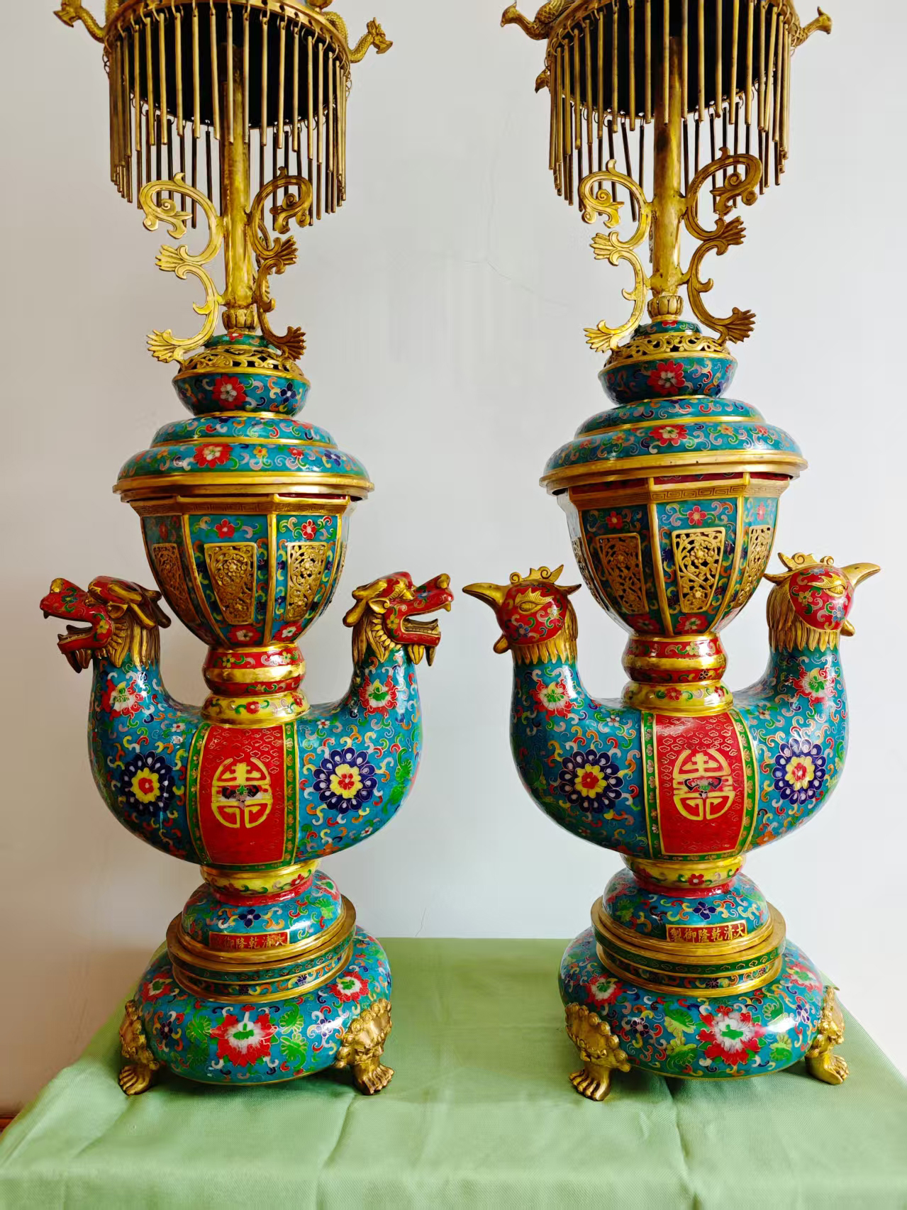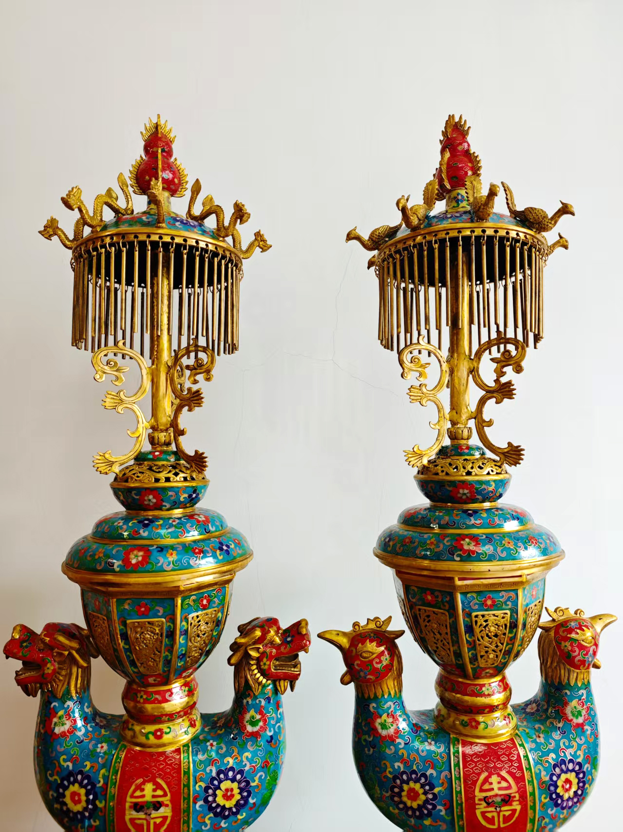 作品名称:景泰蓝龙凤宫灯一对