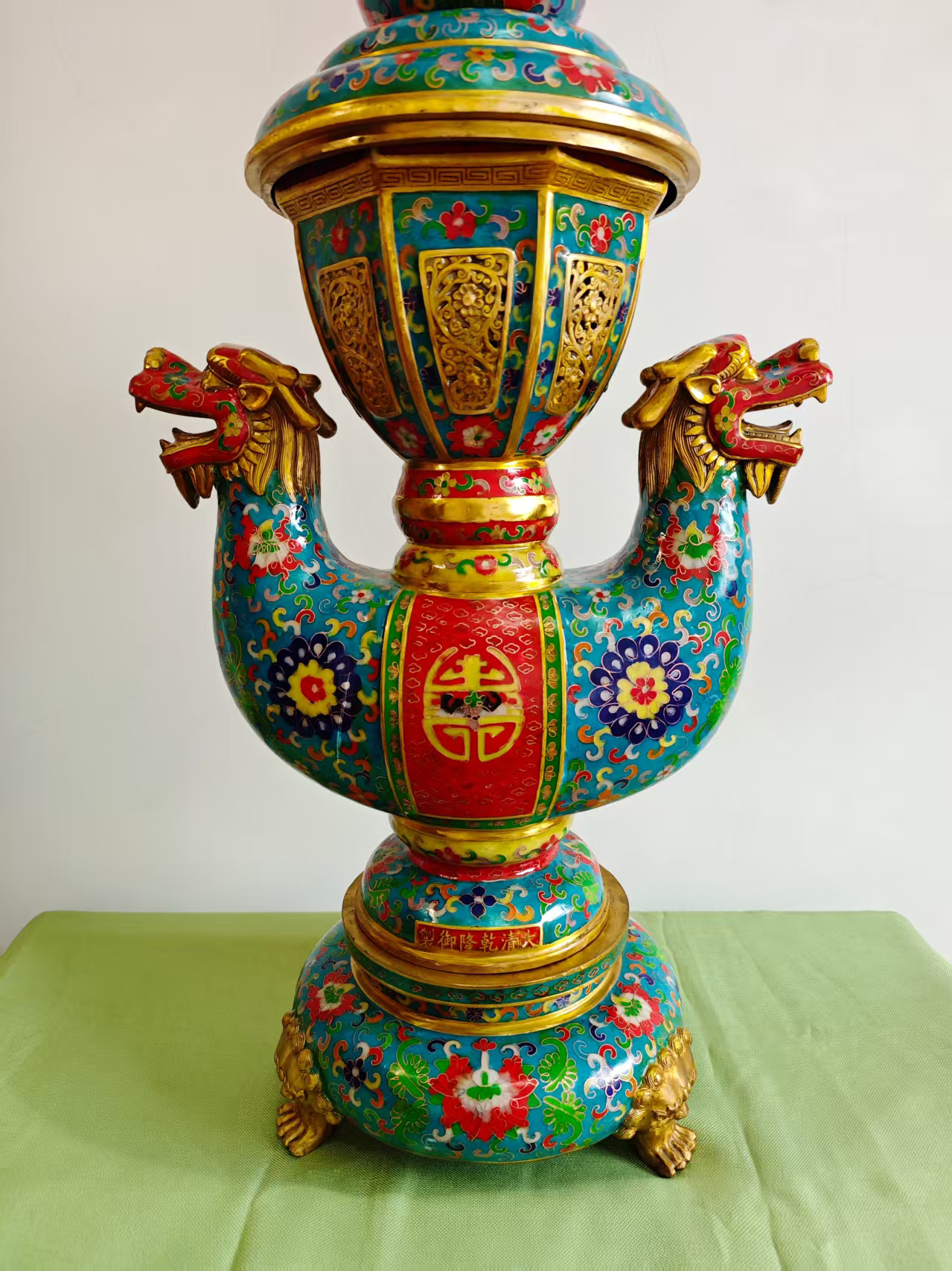 清乾隆斗彩万福庆寿双螭耳龙纹大瓶AK0093
