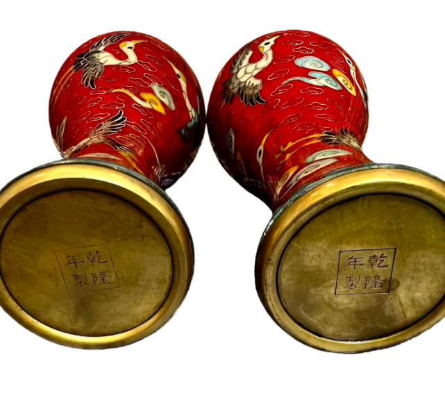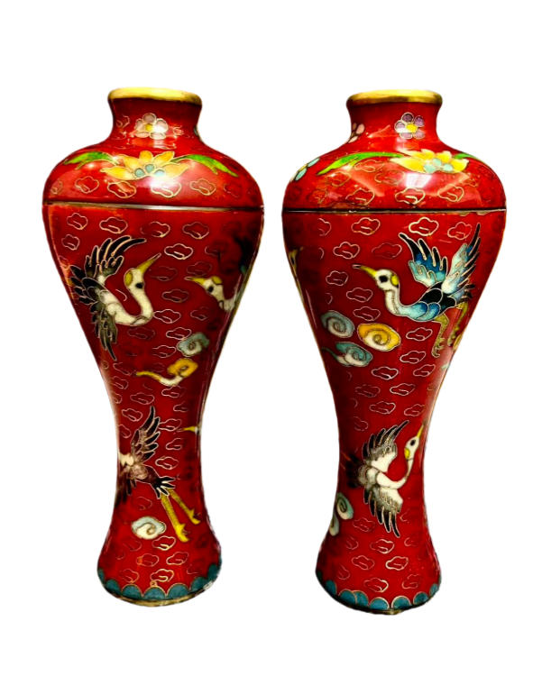 作品名称:云鹤纹铜胎梅瓶一对