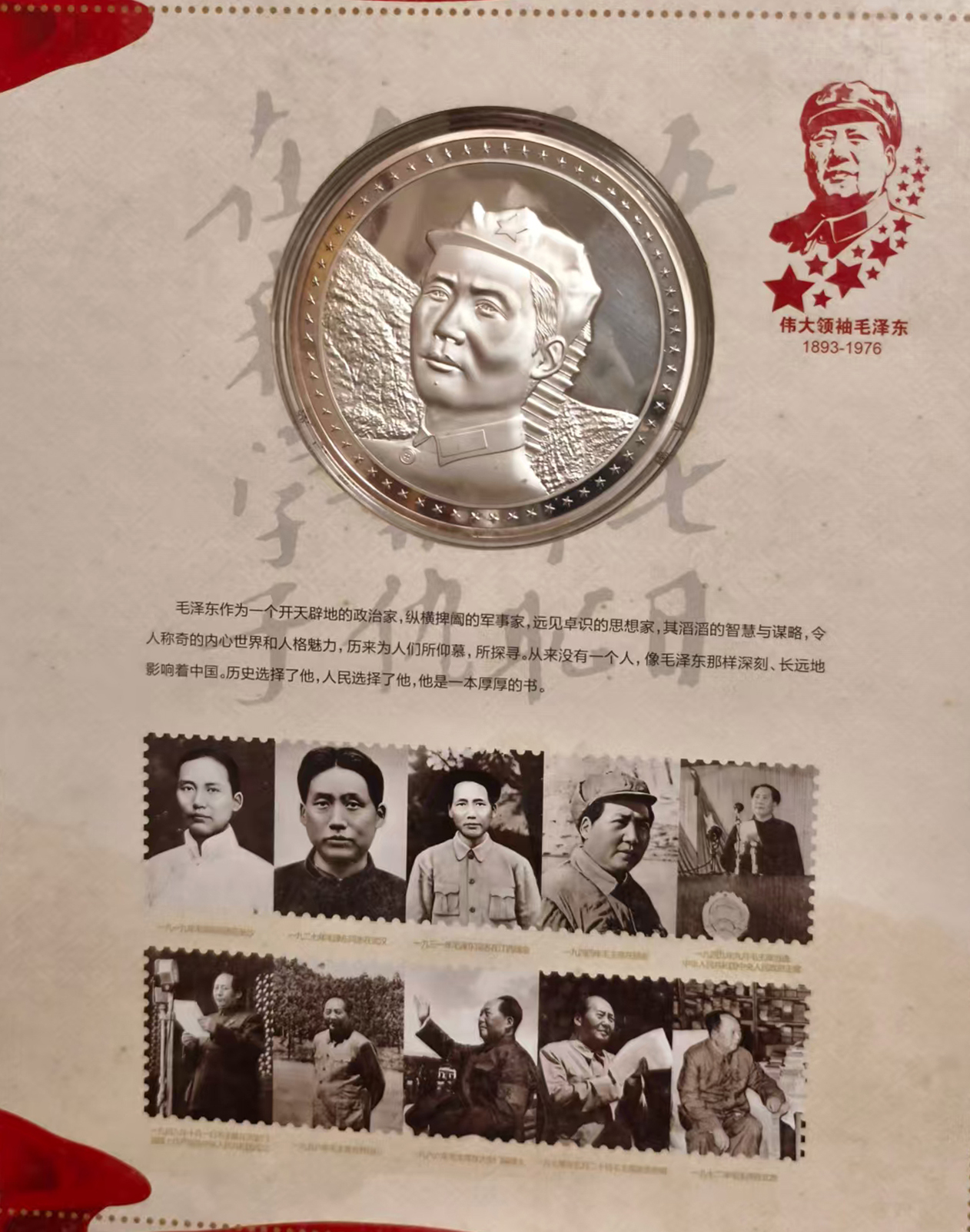 作品名称:珍藏版《伟大领袖毛泽东》纪念银币邮票一套