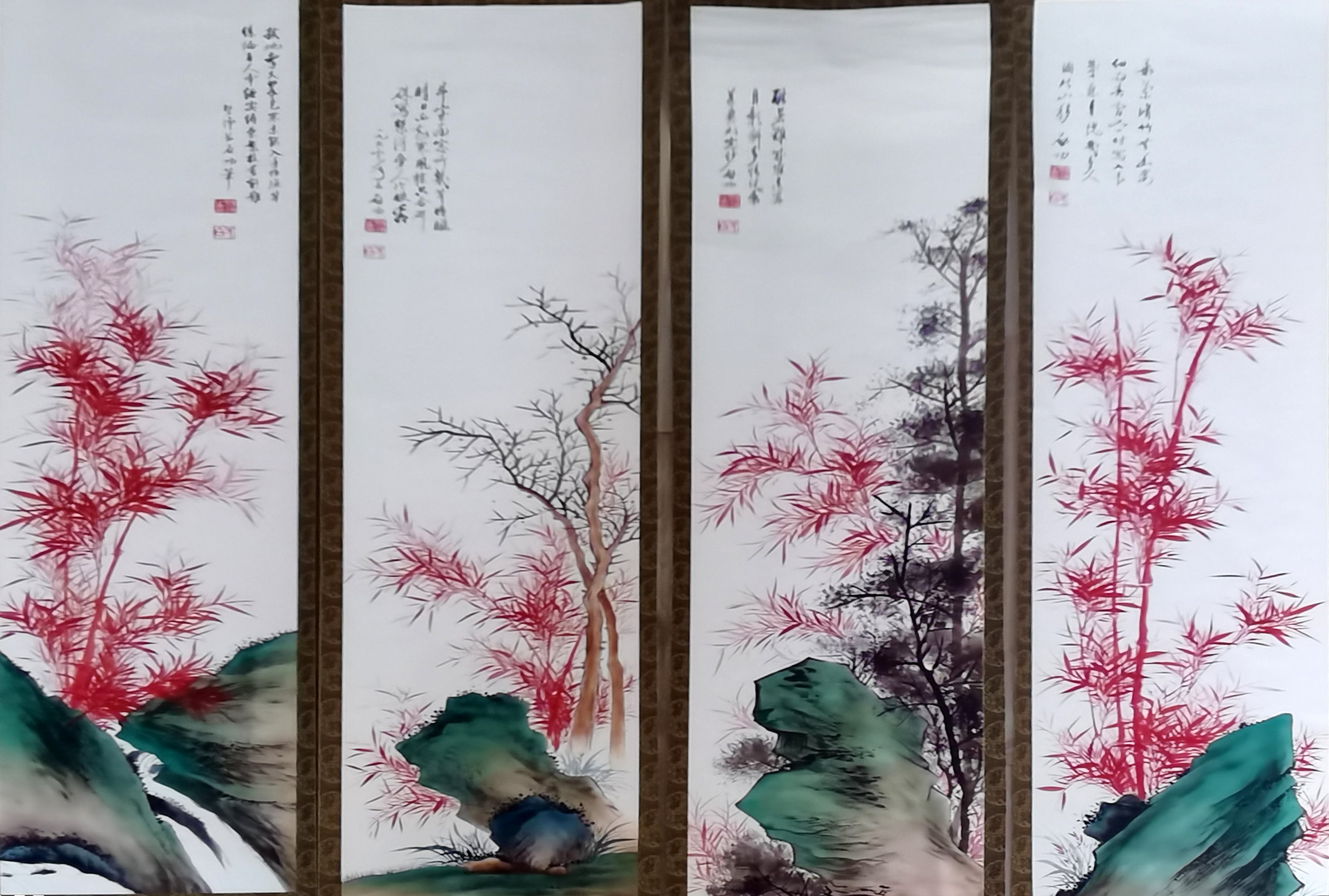 国画:红竹四条屏