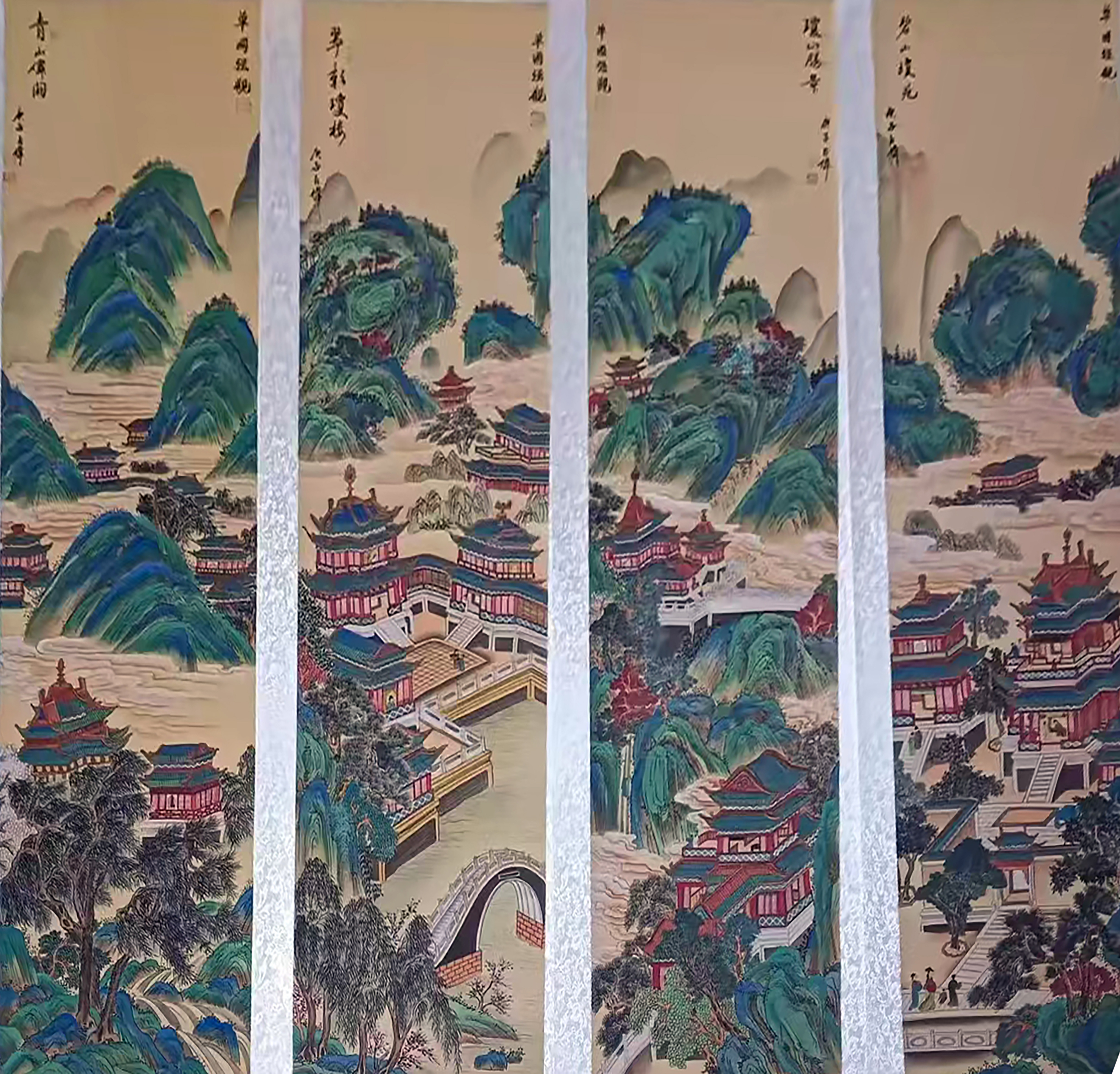 青绿山水楼阁四条屏AH0202