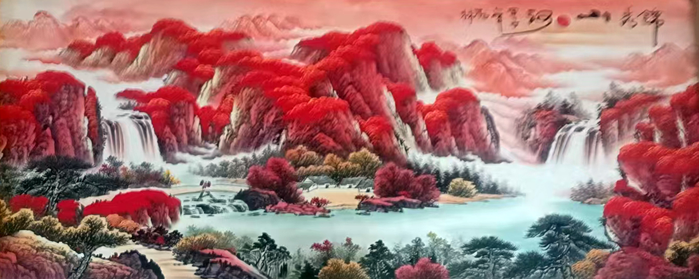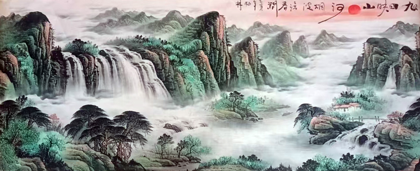 国画:锦绣山河+旭日映山河