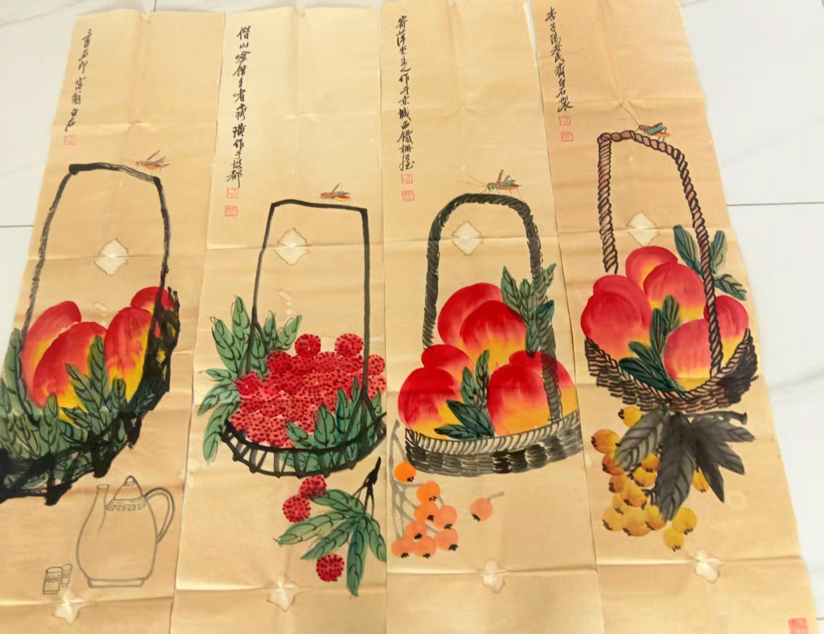 寿桃四条屏AB0661