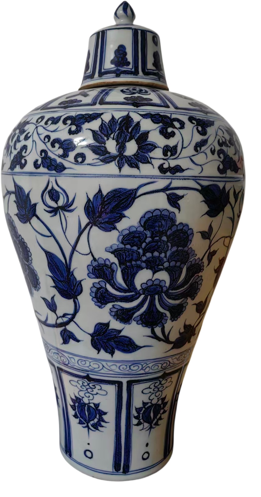 作品:元青花缠枝花纹梅瓶带盖