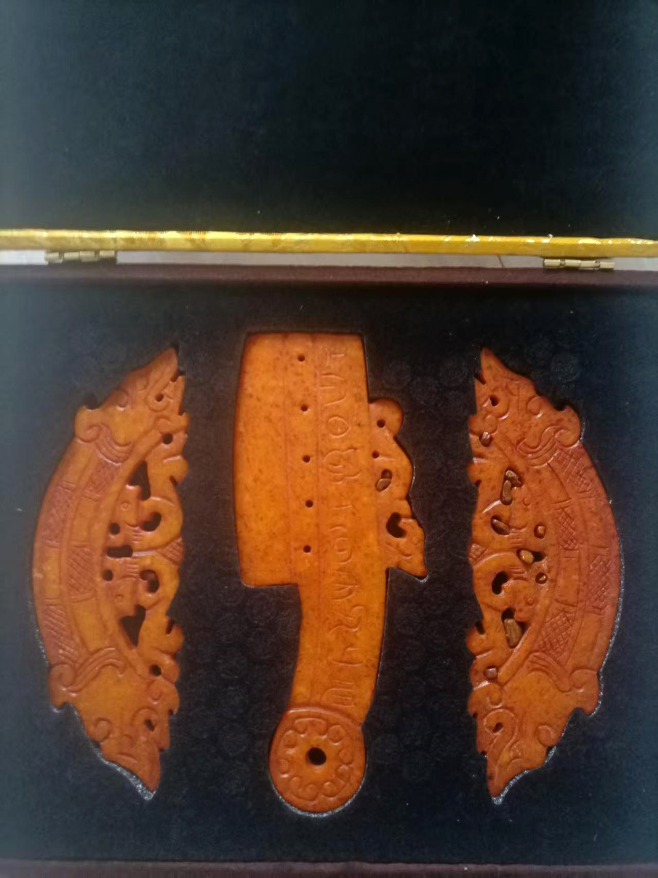 左右双龙玉璜,中间是玉戈AK0545