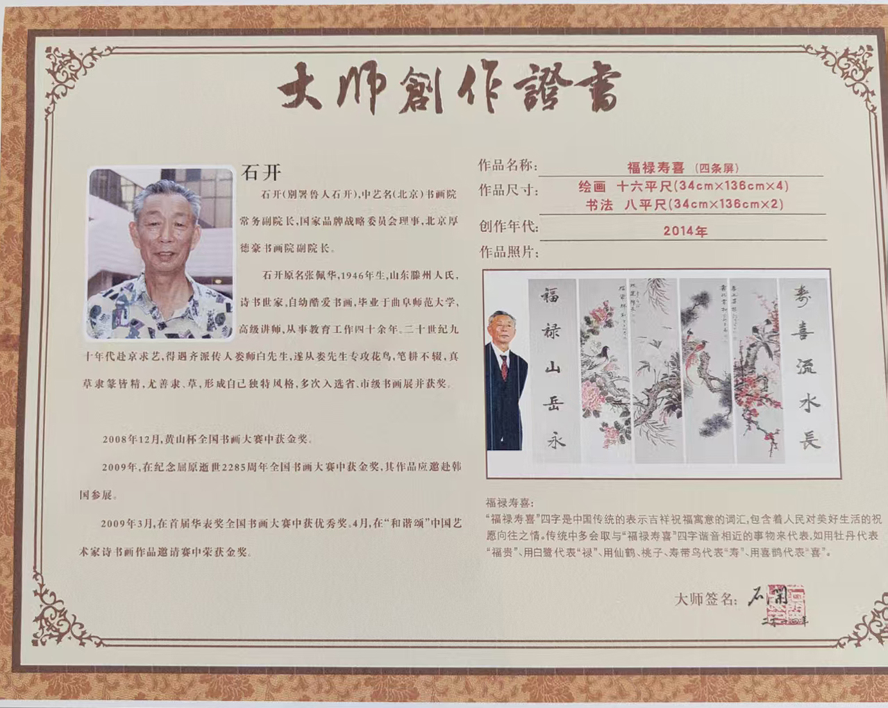 作品:《福禄寿喜四条屏》