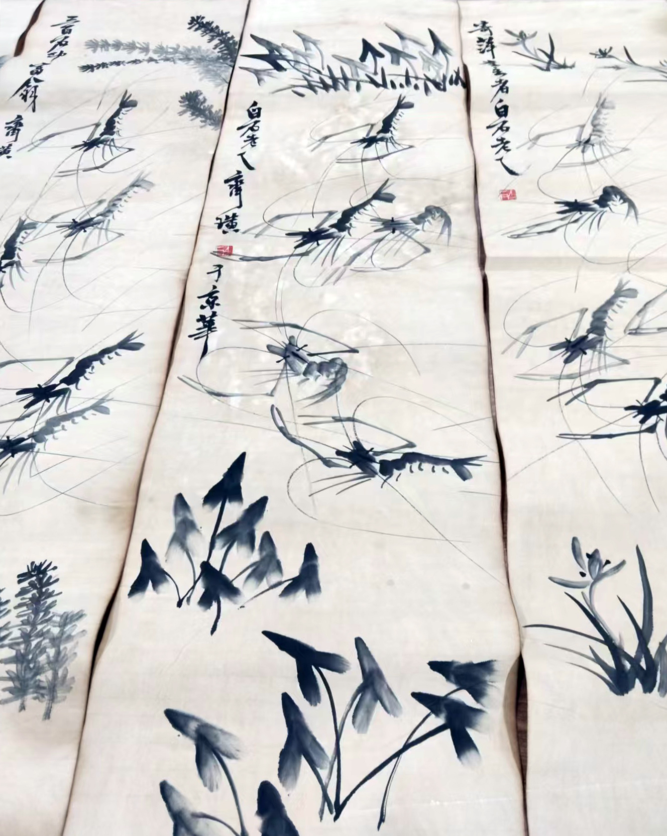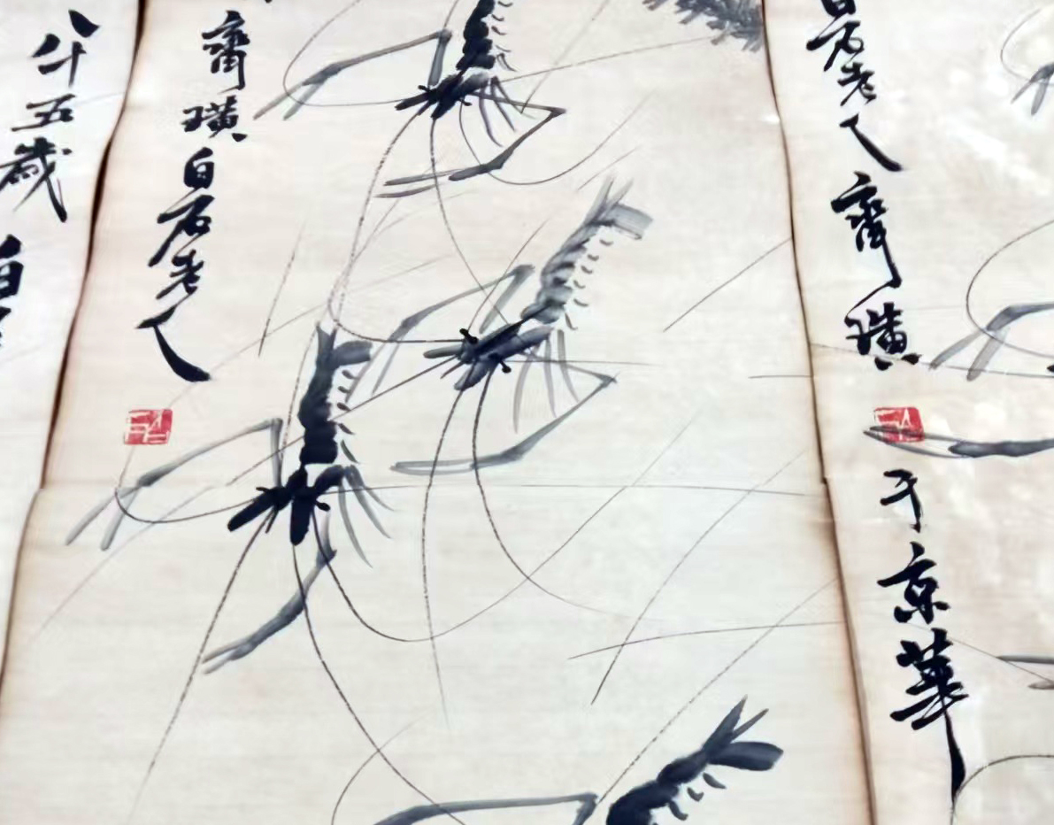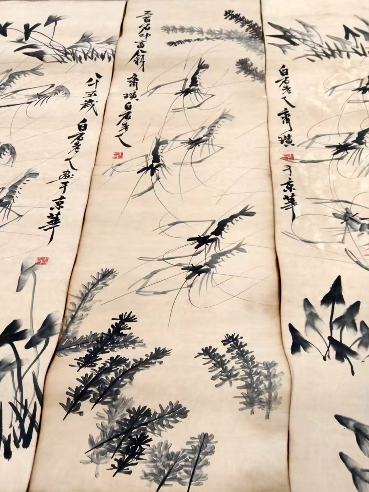作品:虾草栖戏图四条屏