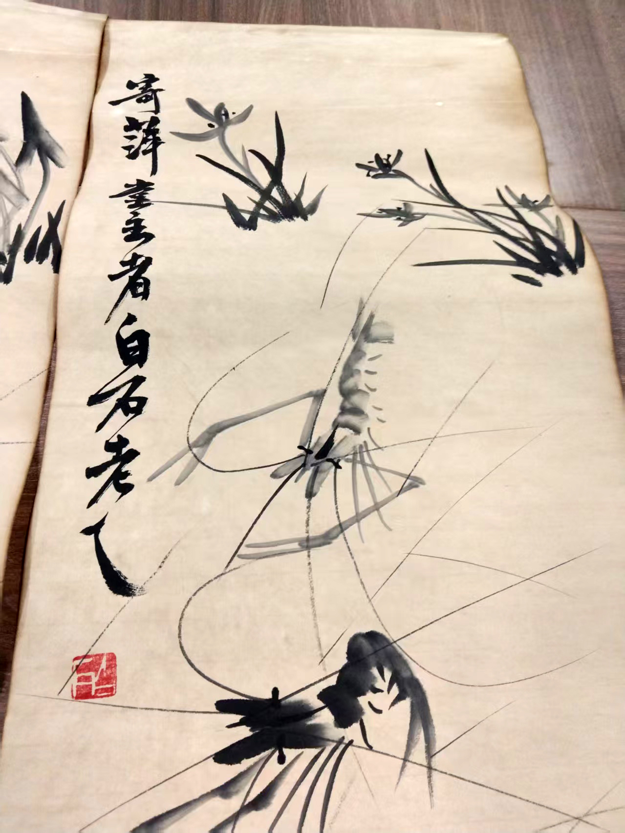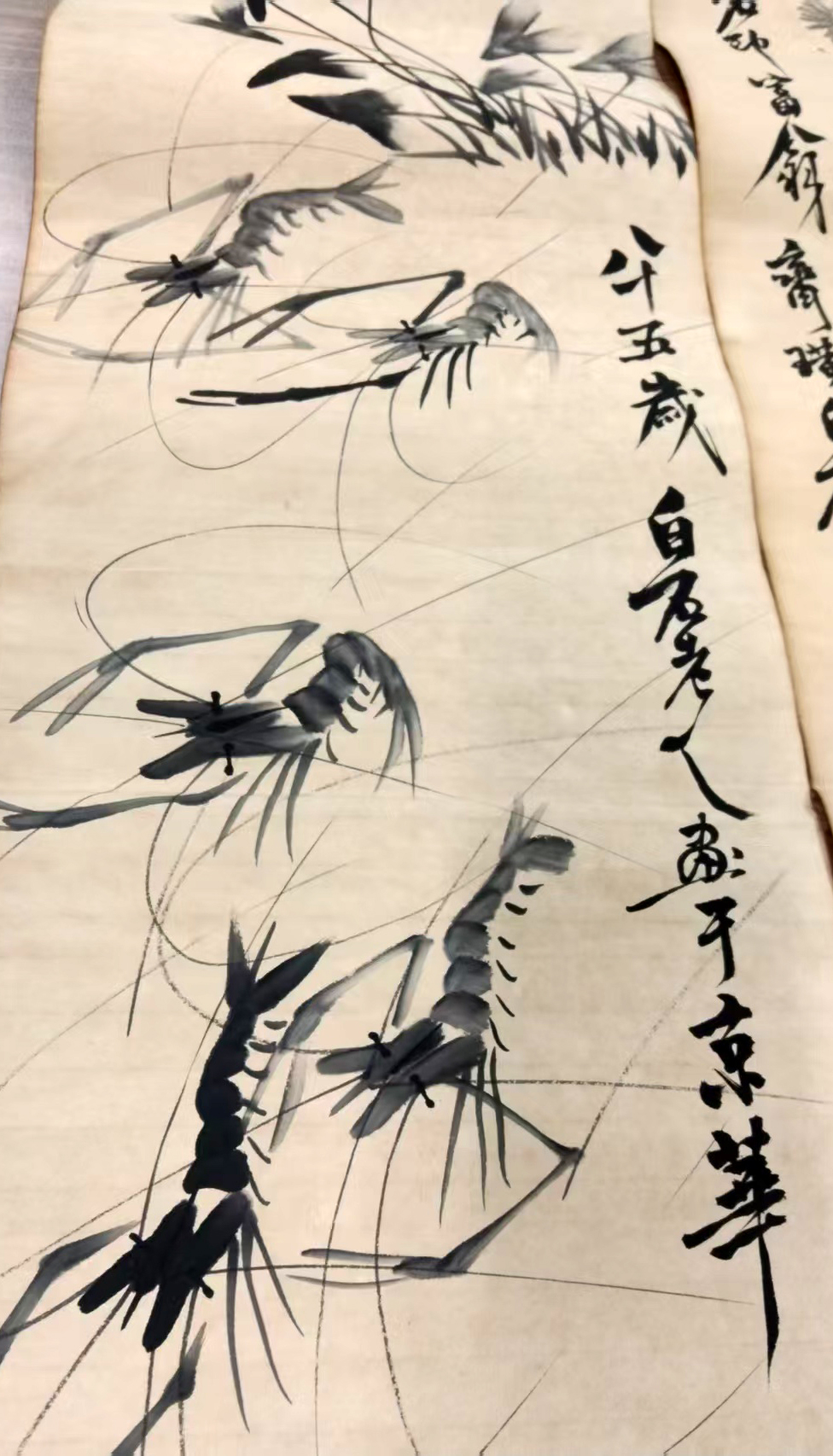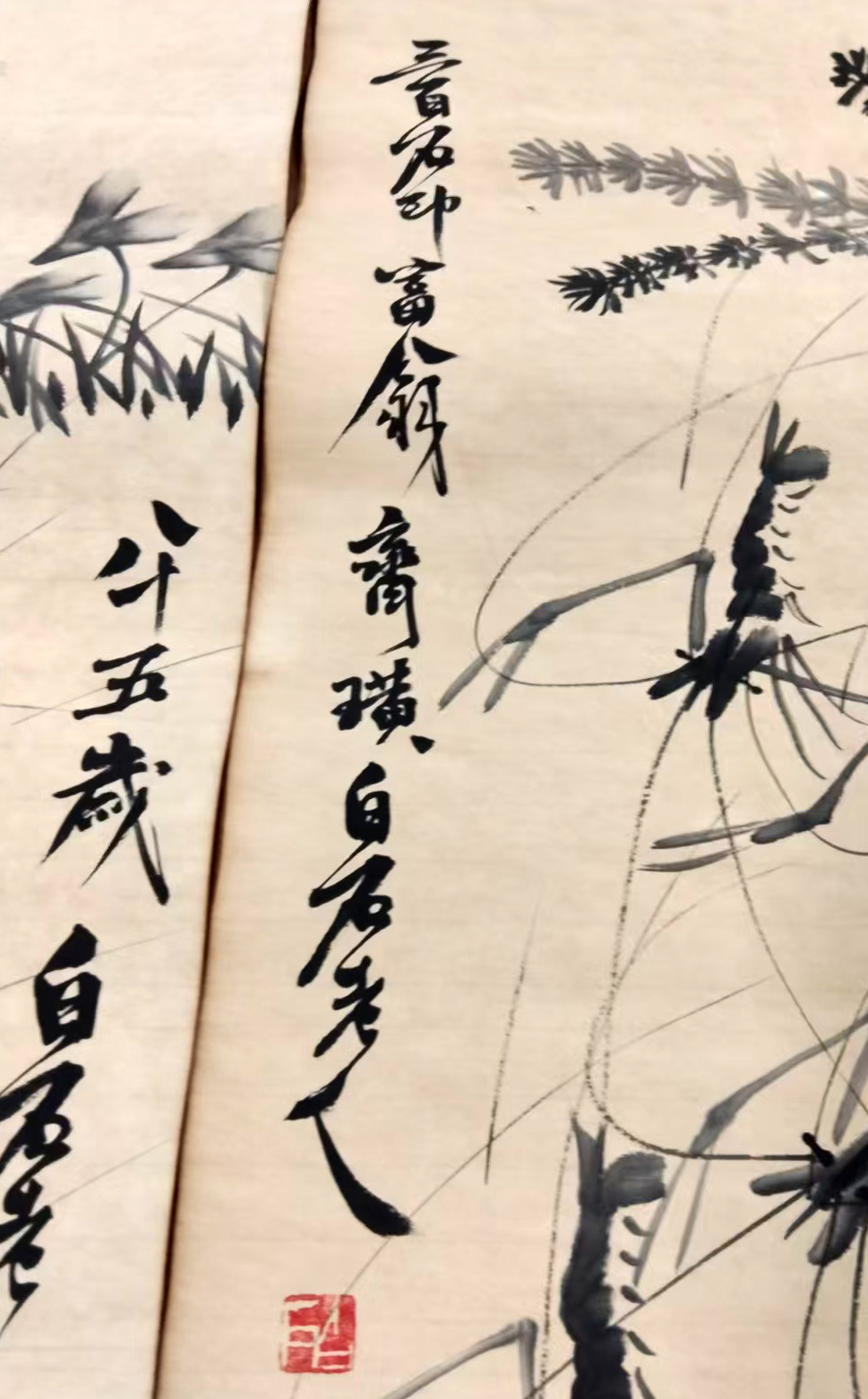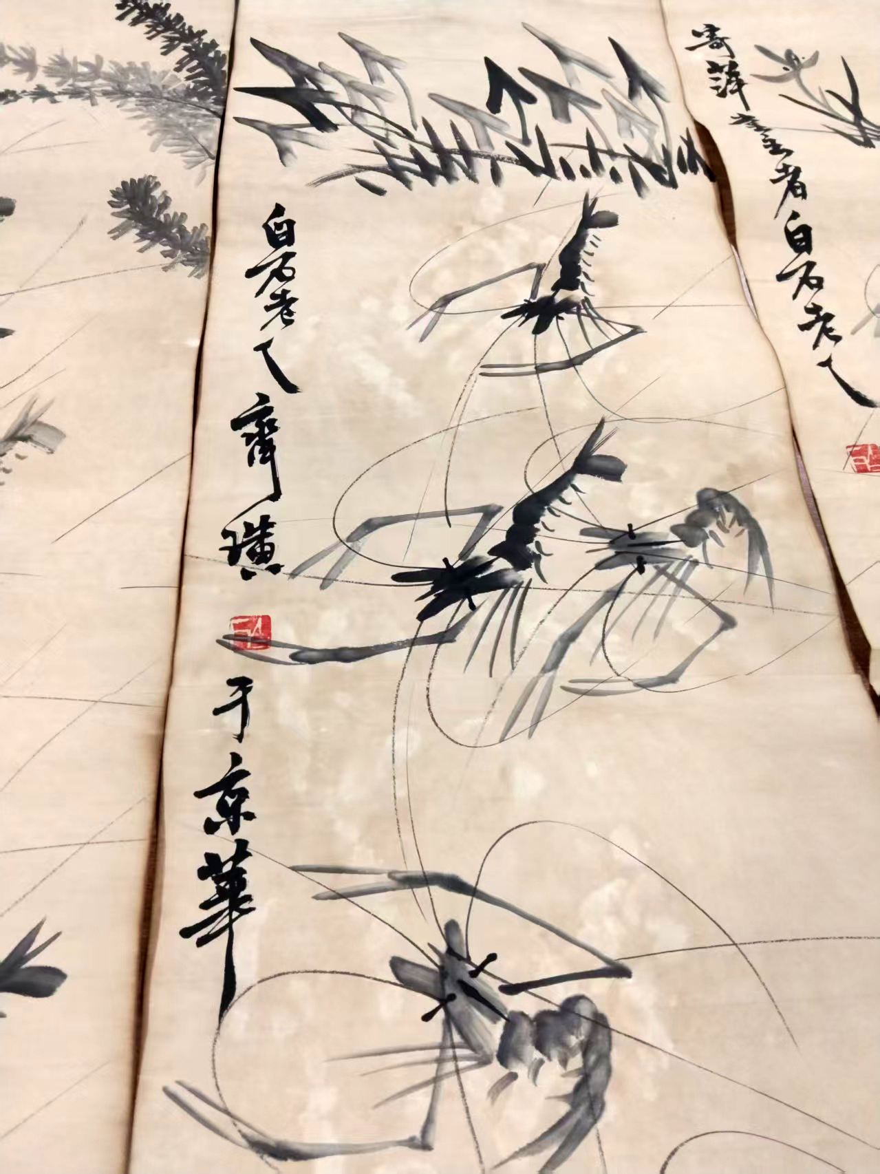 作品:虾草栖戏图四条屏